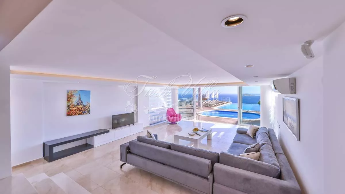 - Гостиная: с видом на море и природу, с удобной мебелью, спутниковым телевидением (LCD), беспроводным интернетом, кондиционером и выходом на террасу у бассейна.
