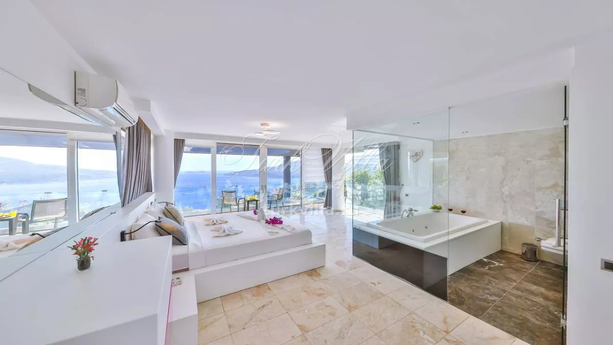 На первом этаже находятся американская кухня с видом на море, просторная гостиная и одна спальня-люкс. На верхних этажах расположены три спальни-люкса с потрясающим морским видом.