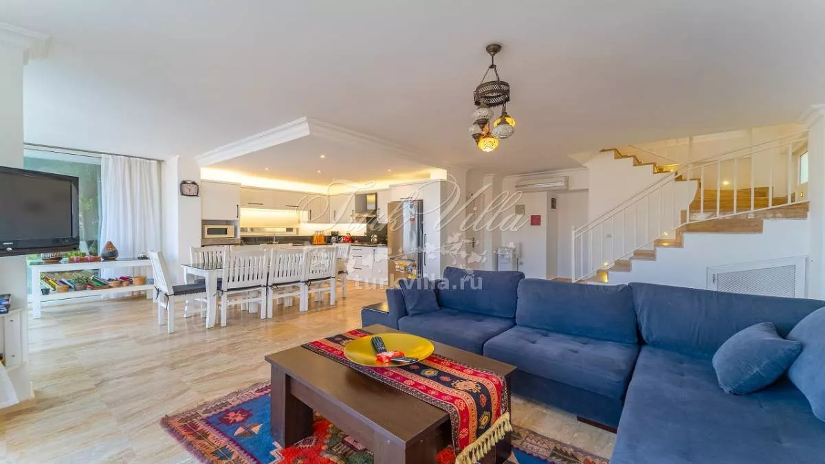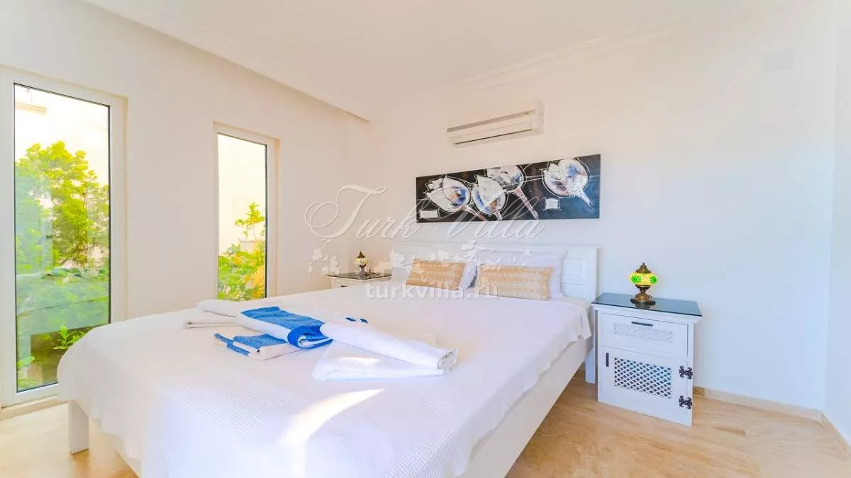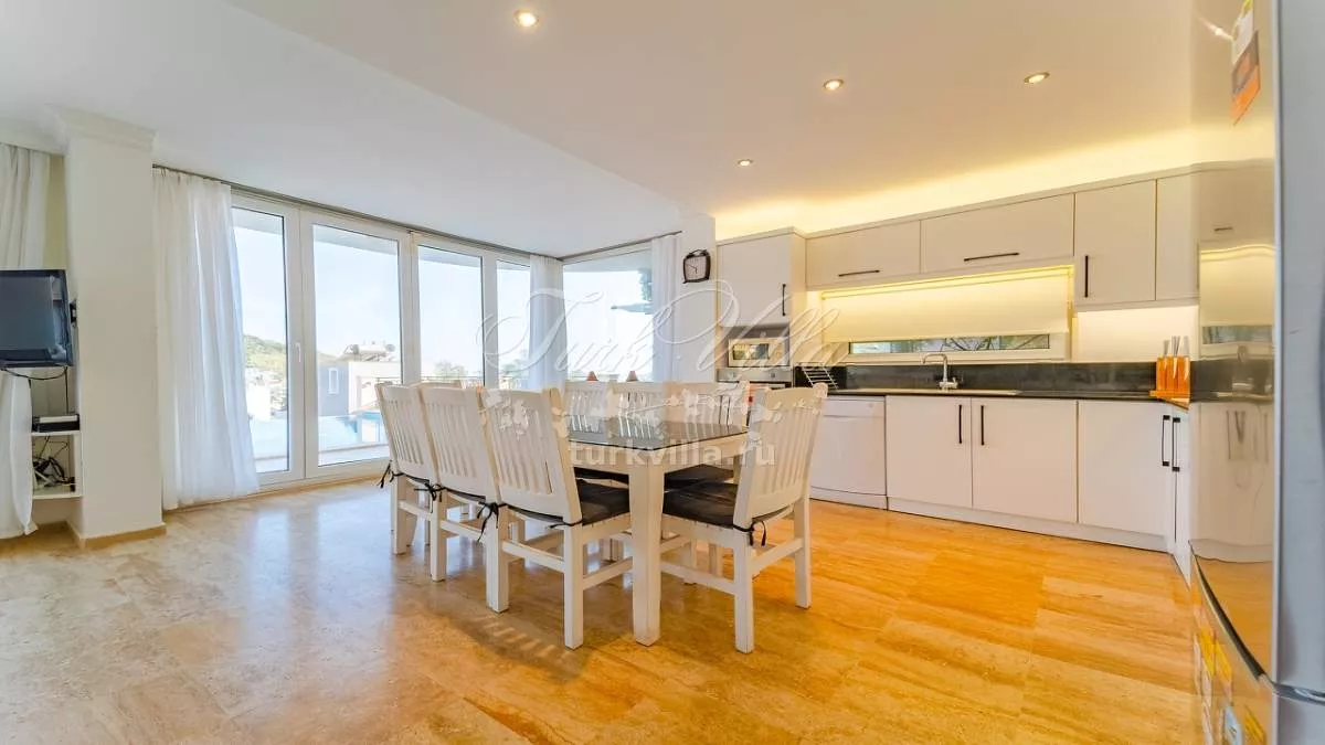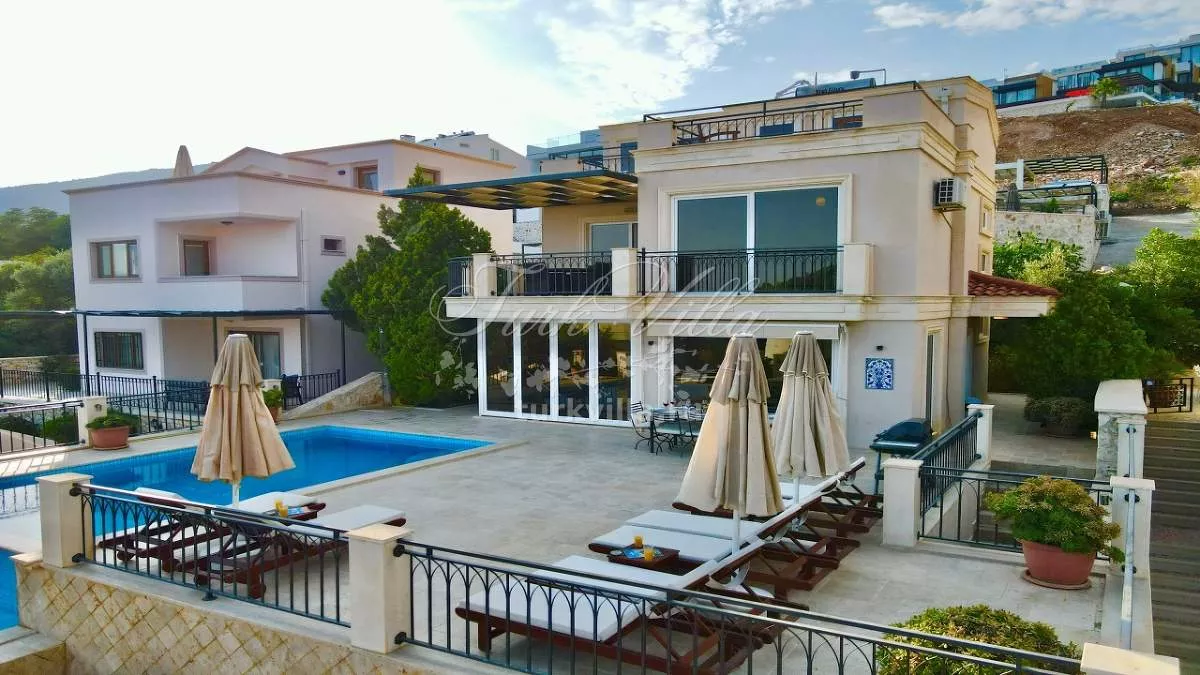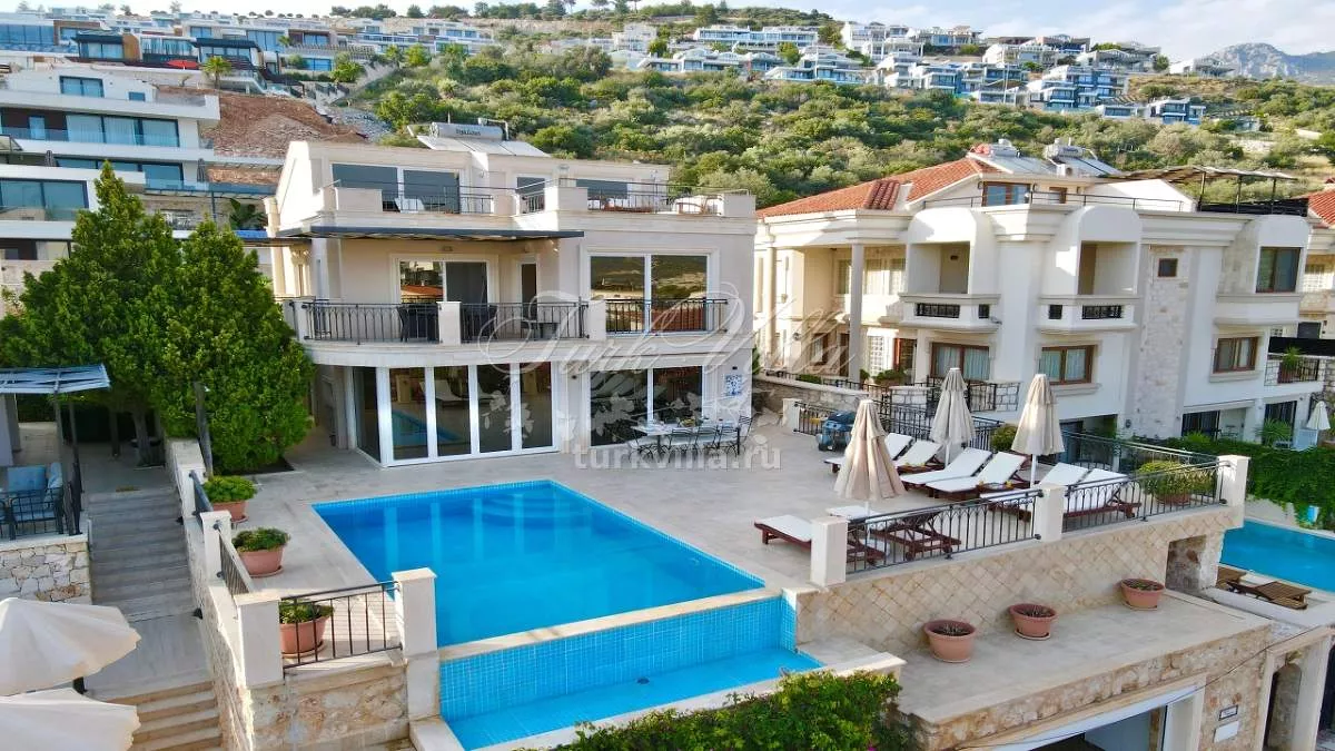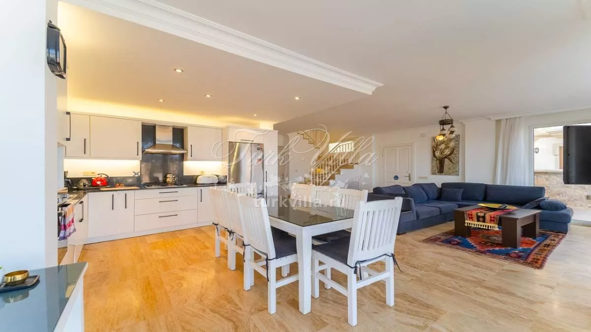 Вилла расположена в районе Каламар, город Калкан, и предлагает панорамный вид на море и природу. С террасы и частного бассейна открывается прекрасный вид, что делает это место идеальным для отдыха семей и больших групп. Вилла состоит из просторной и современно оформленной американской кухни и гостиной, которая выходит на террасу с бассейном, а на верхних этажах находятся пять спален.