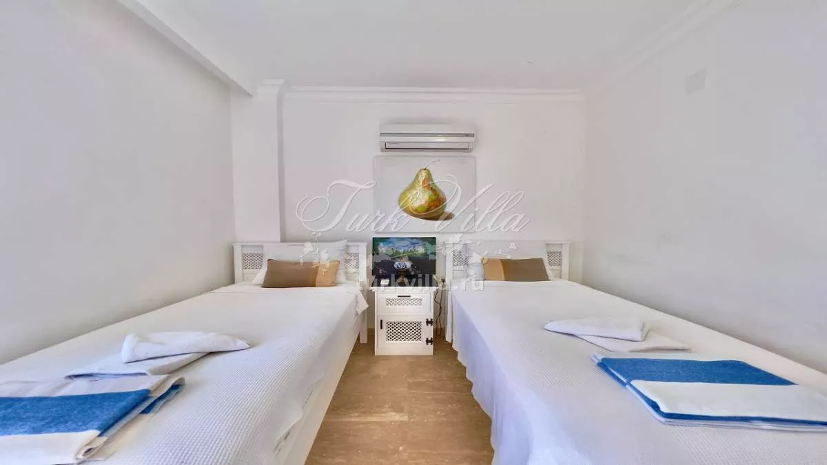 5. Спальня 5: две односпальные кровати, кондиционер, прикроватная тумбочка, шкаф, ванная комната и туалет.