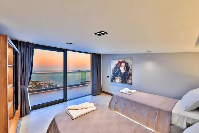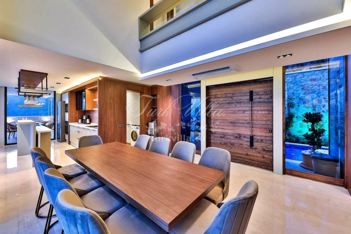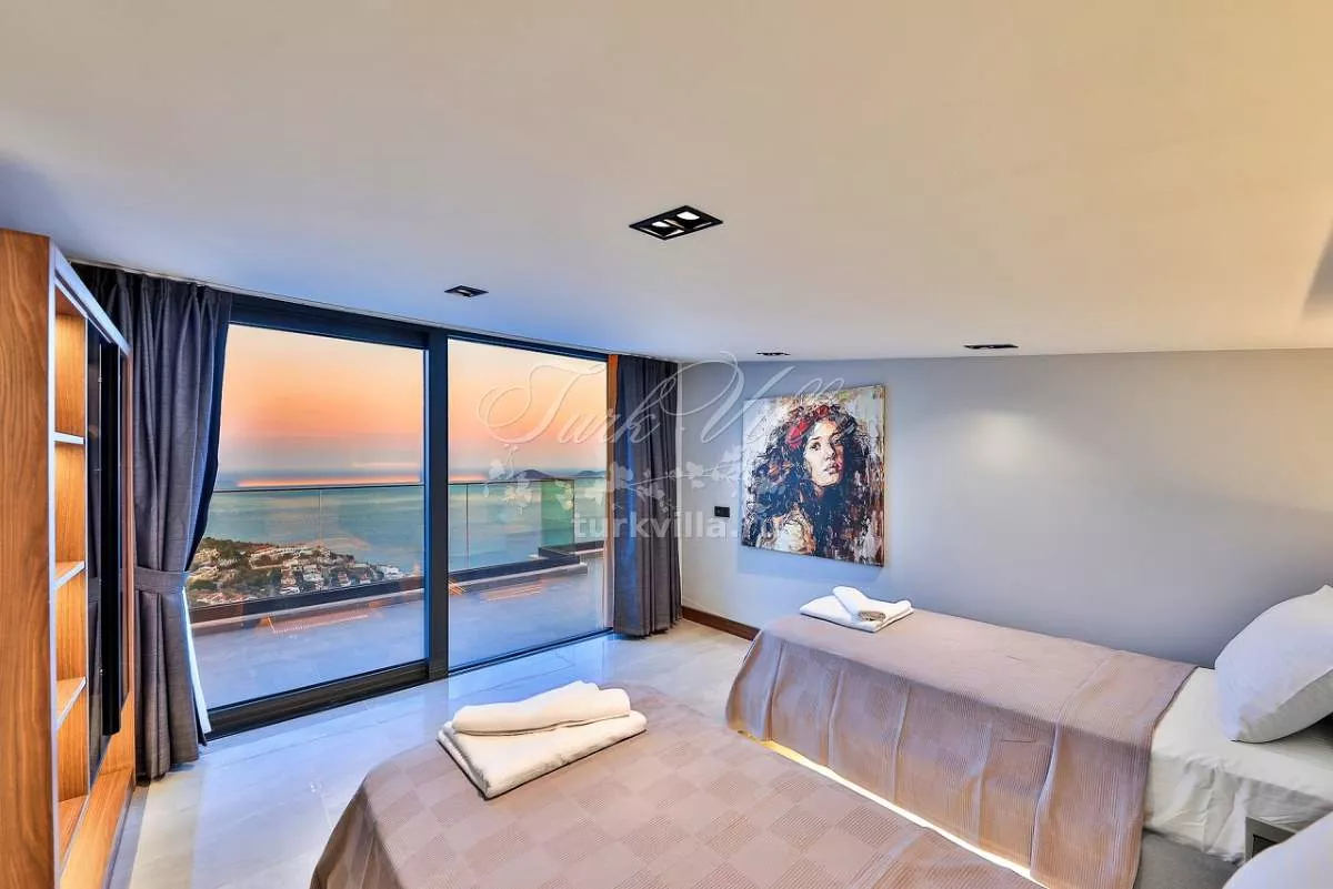 Вилла расположена в Калкане, с потрясающим видом на бухту Каламар. С 6 спальнями и вместимостью до 12 человек, она идеально подойдет для больших семей или компаний друзей. Этот уникальный дом спроектирован так, чтобы из каждой комнаты открывался вид на море.