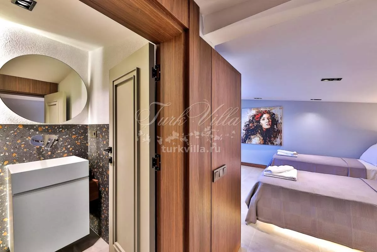 Этот дом предлагает не только роскошное проживание, но и возможность насладиться красотой природы Калкана. Для больших групп доступна аренда соседнего дома, что позволяет отдыхать рядом, сохраняя при этом личное пространство.