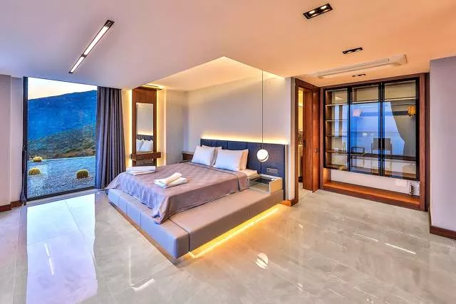 Вилла находится в одном из самых живописных мест бухты Каламар и выделяется современным дизайном. Бескрайний бассейн с панорамным видом дарит гостям особенные впечатления от отдыха. Архитектура сочетает в себе современные линии с теплотой натуральных материалов, таких как дерево и камень, что создает уют и элегантность.