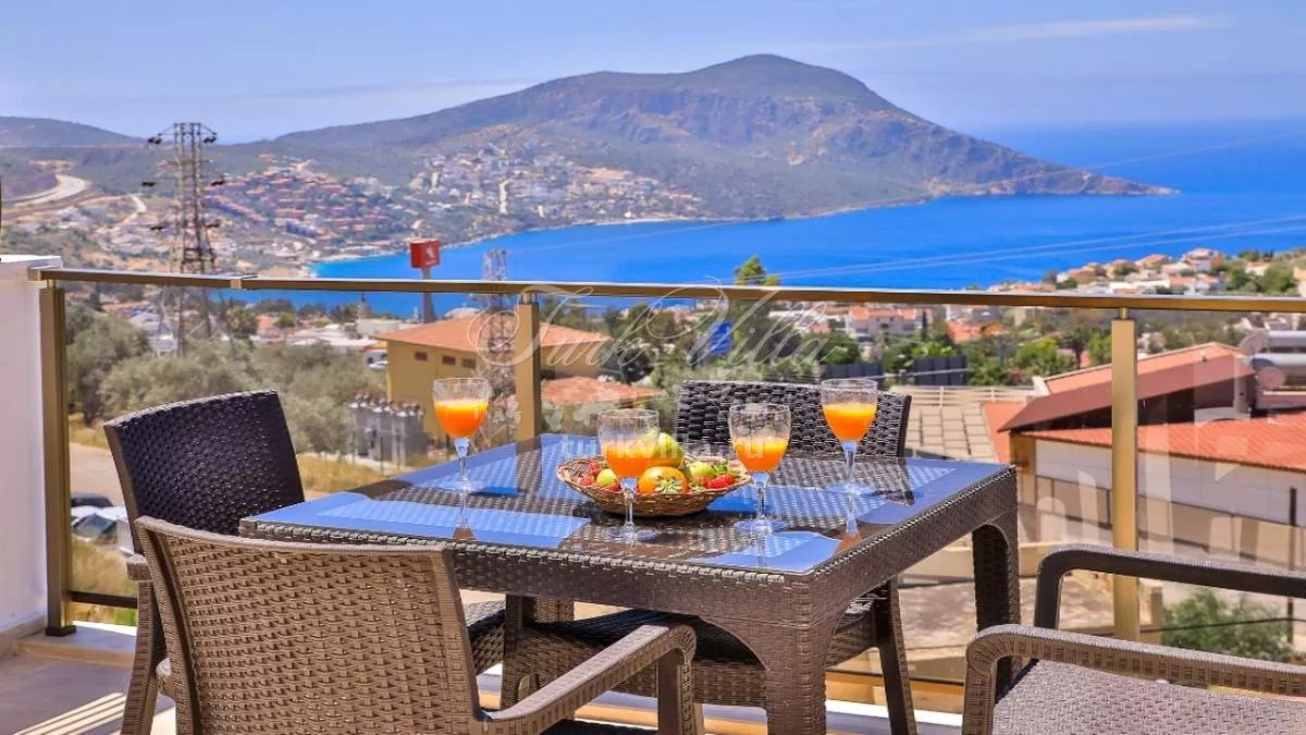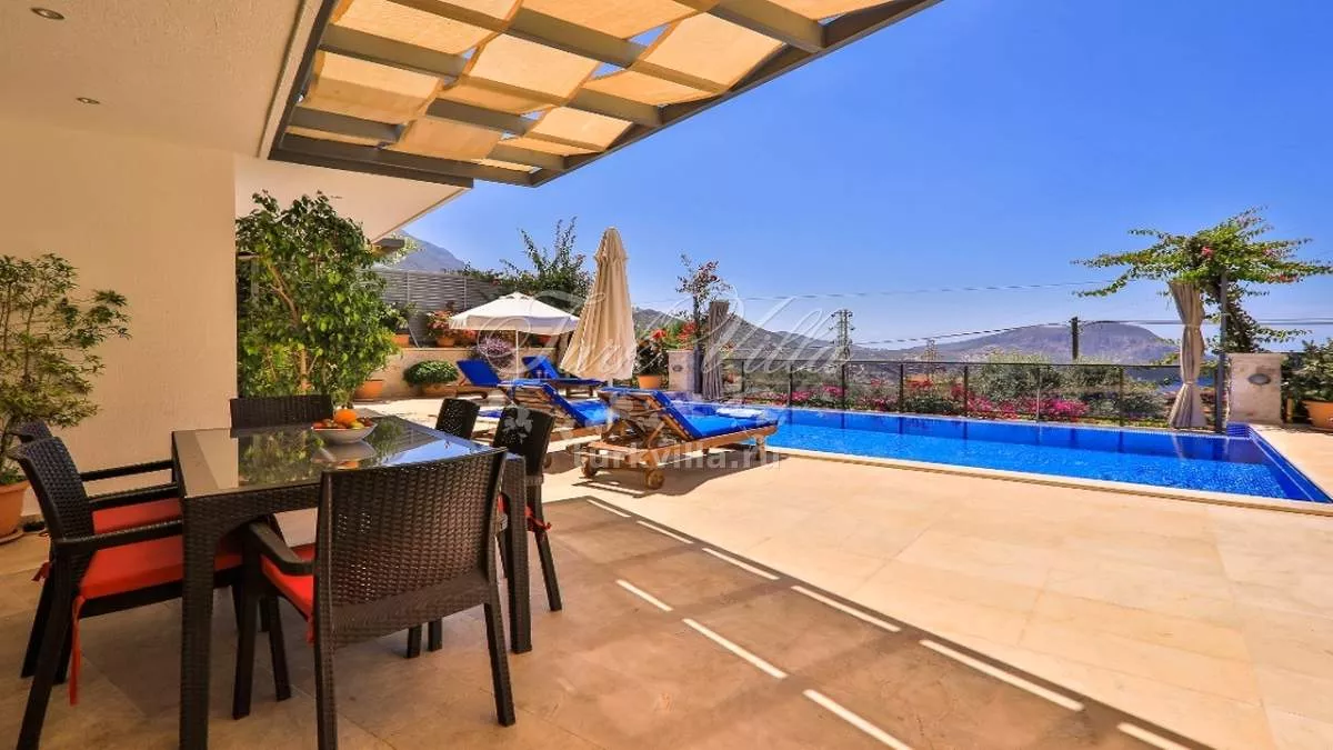 Терраса виллы предлагает великолепный панорамный вид на море и горы. Гости могут пользоваться открытым бассейном, зонами для отдыха, шезлонгами, обеденным столом на 6 персон, солнцезащитными зонтами, а также барбекю.