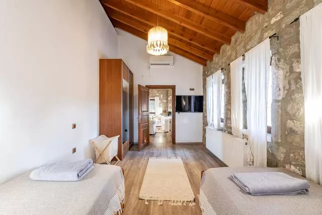 В доме две спальни, одна из которых оборудована двуспальной кроватью. Вилла рассчитана на комфортное проживание до четырех человек, включая детей. Интерьер оформлен со вкусом и полностью укомплектован всем необходимым для комфортного отдыха.