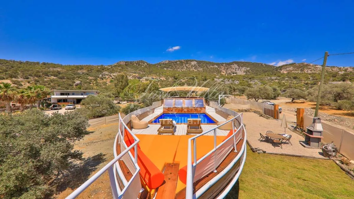 Сдается в аренду уникальная вилла в районе Калкан, Патара, выполненная в виде корабля. Это необычное жилье с частным бассейном, созданное на основе обновленного строения с сохранением оригинального каркаса. Вилла идеально подходит для уединенного отдыха среди природы.