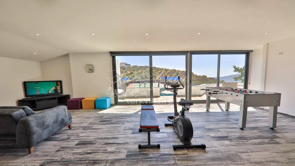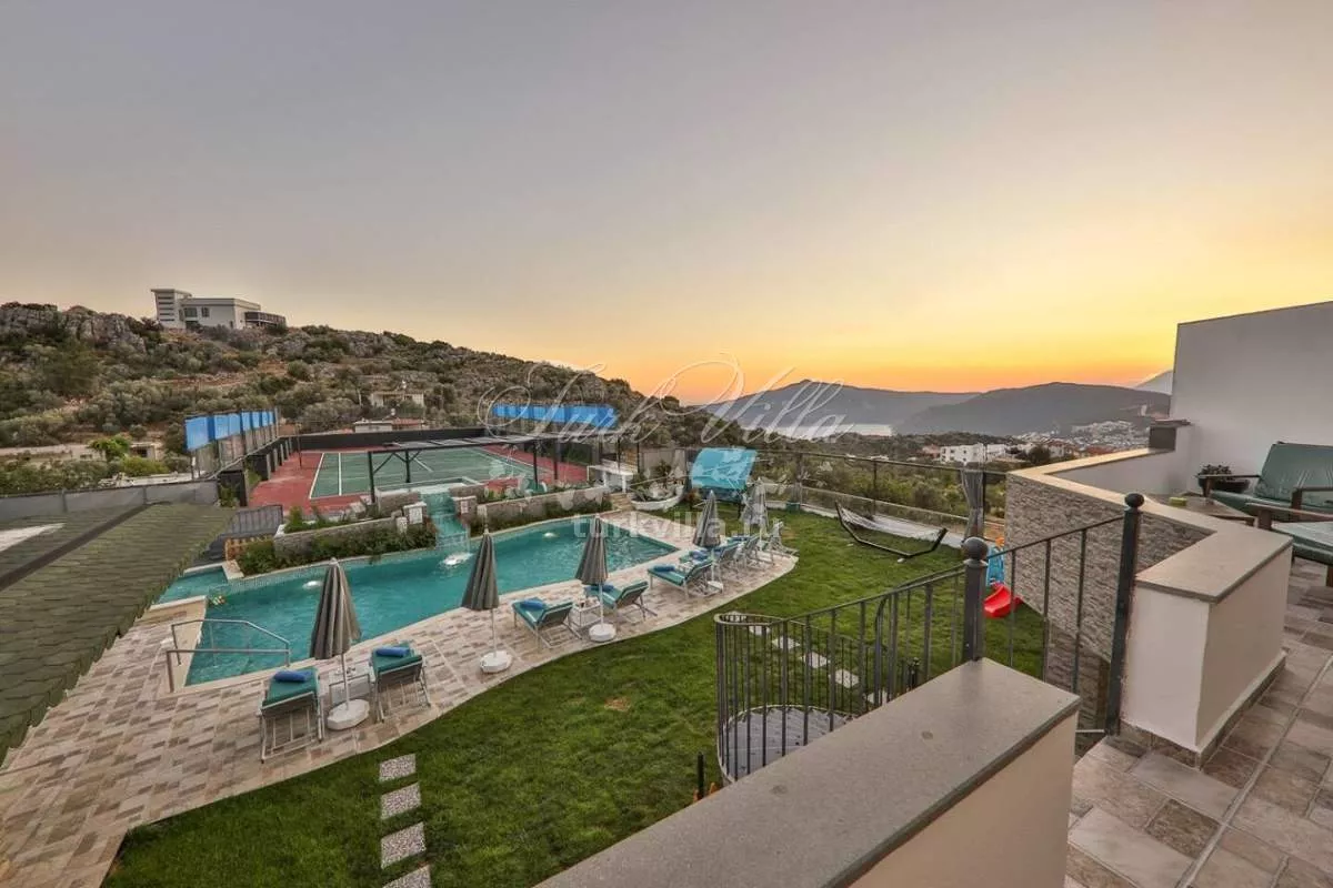 Сдается в аренду роскошная вилла с частным бассейном в районе Кёрдере, Калкан. Этот просторный дом расположен на большой территории и предлагает все необходимое для незабываемого отдыха. Вилла оборудована собственным теннисным кортом, хаммамом, сауной, а также игровыми зонами, включая настольный теннис, бильярд, настольный футбол, велотренажер и PlayStation 3.