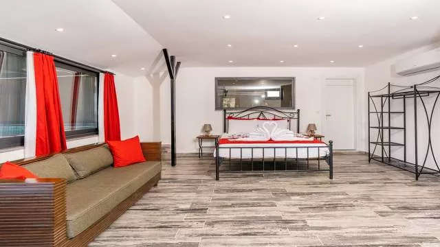 6. Спальня с двуспальной кроватью, ванной комнатой, телевизором, кондиционером и мини-кухней