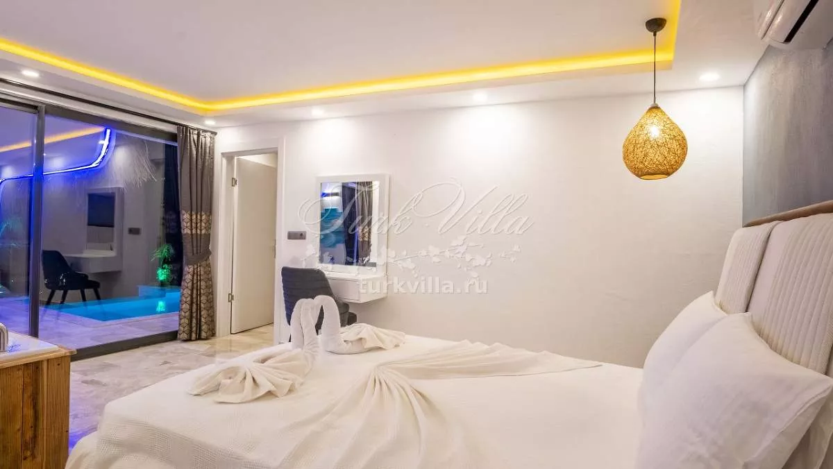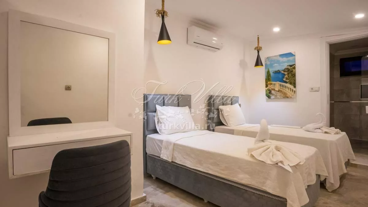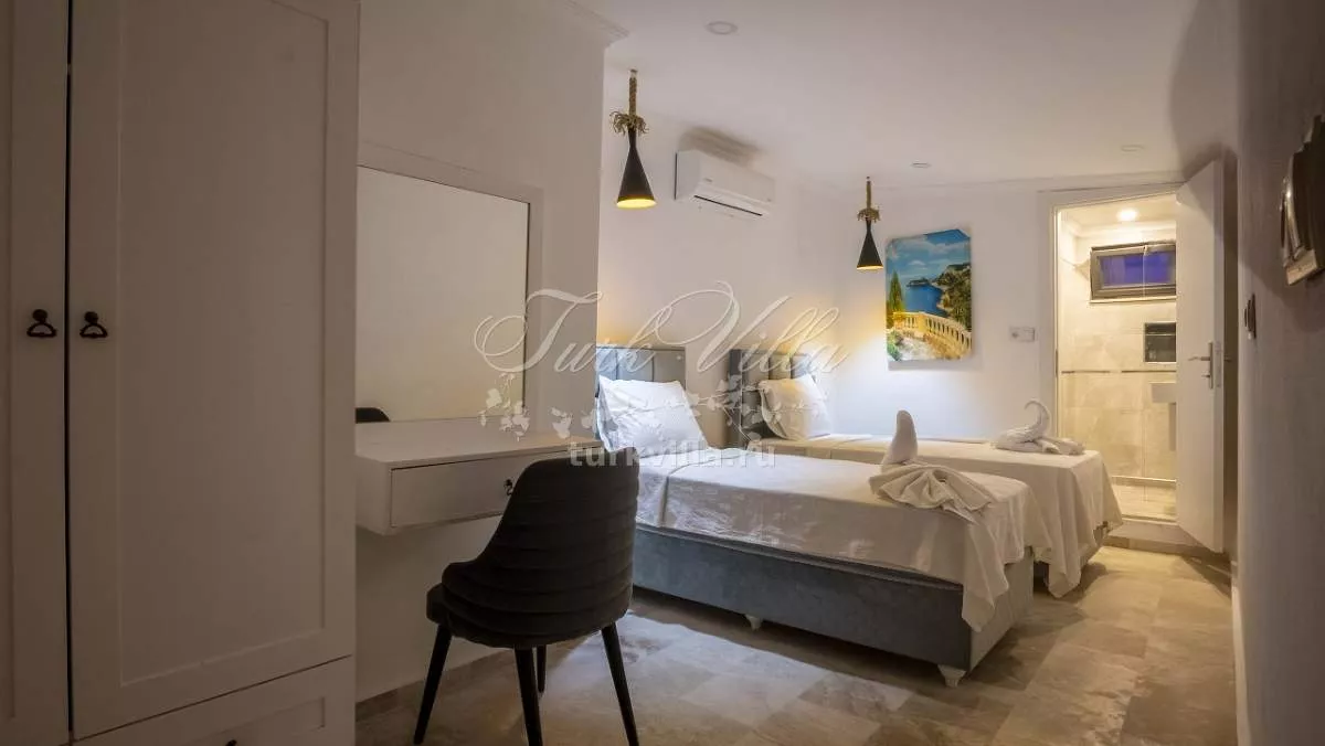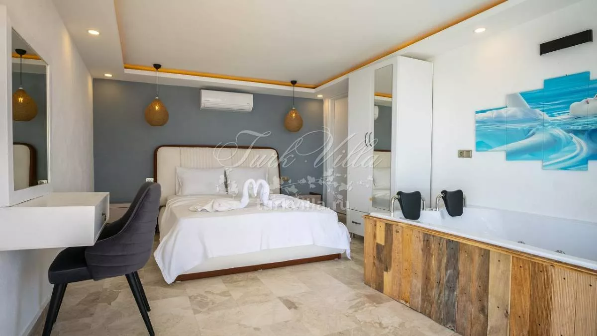 Сдается в аренду уютная вилла в районе Акбель, Калкан. Это идеальный вариант для комфортного отдыха среди природы с прекрасным видом на море и горы. Вилла рассчитана на размещение 4 человек, имеет 2 спальни и оснащена джакузи в одной из комнат.