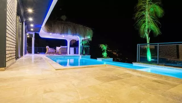 На территории имеется просторная терраса с бассейном, зона для загара и обеденная зона на свежем воздухе. Вилла отлично подойдет для романтического отдыха или семейного путешествия.
