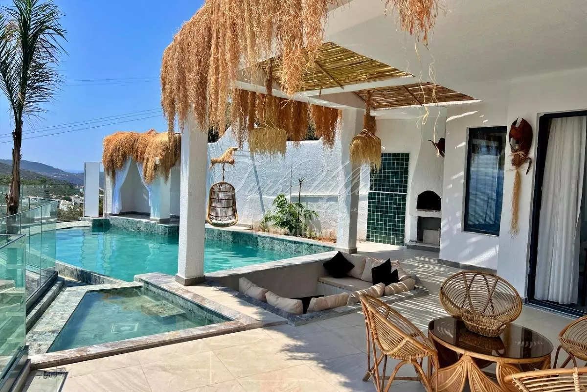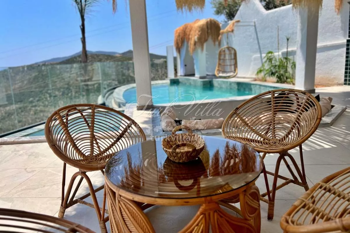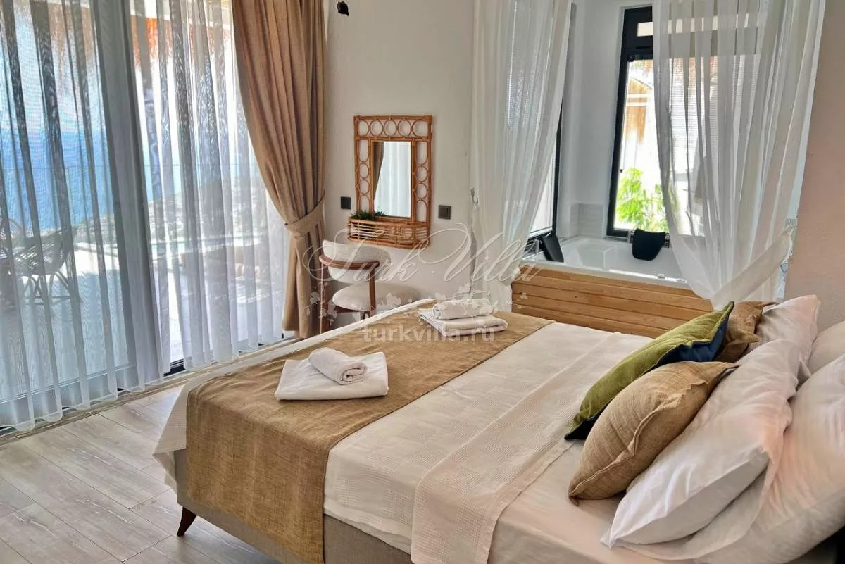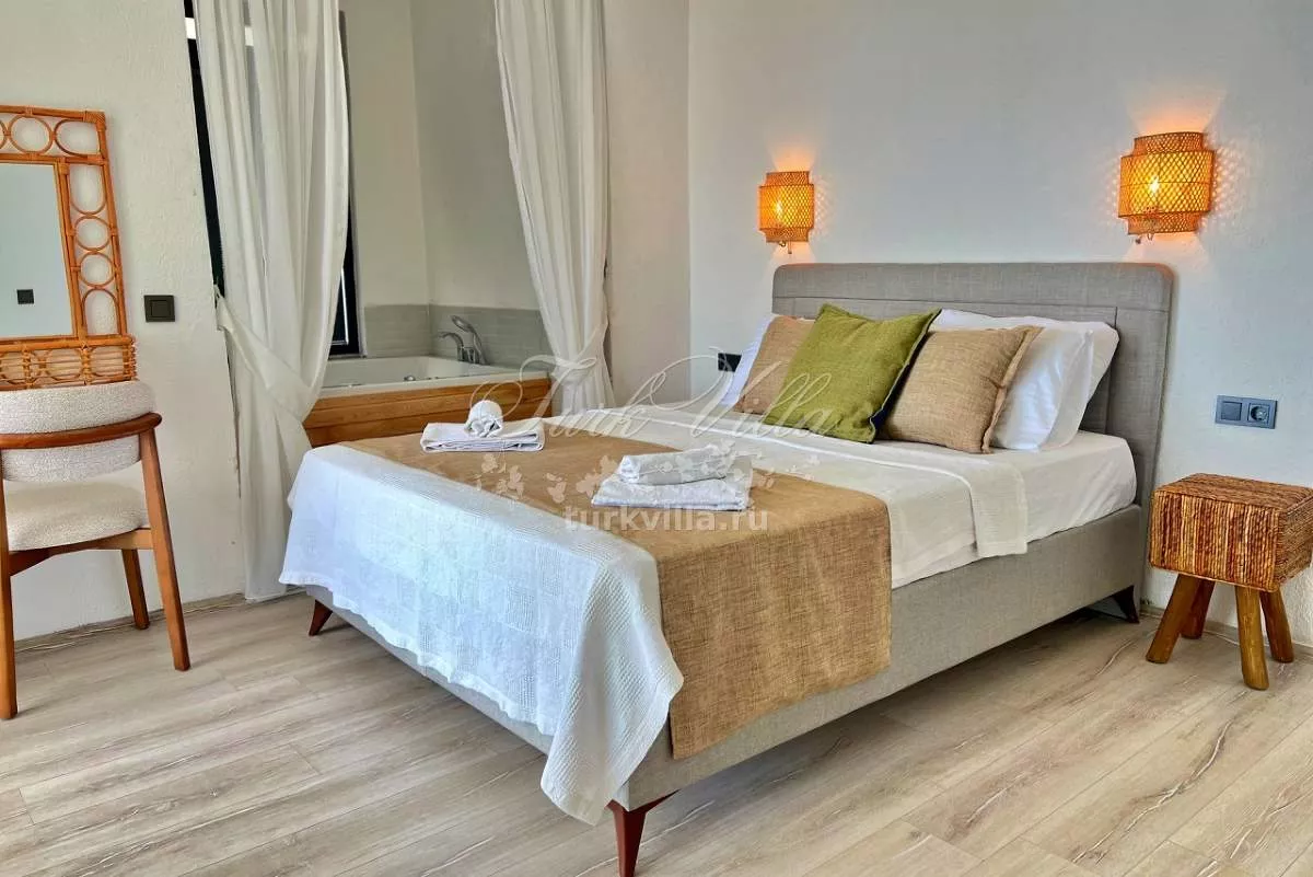 Сдается в аренду уютная вилла в живописном районе Калкан, идеально подходящая для романтического отдыха и комфортного проживания среди природы. Вилла оборудована частным бассейном и джакузи, создавая идеальные условия для уединенного и расслабляющего отдыха.