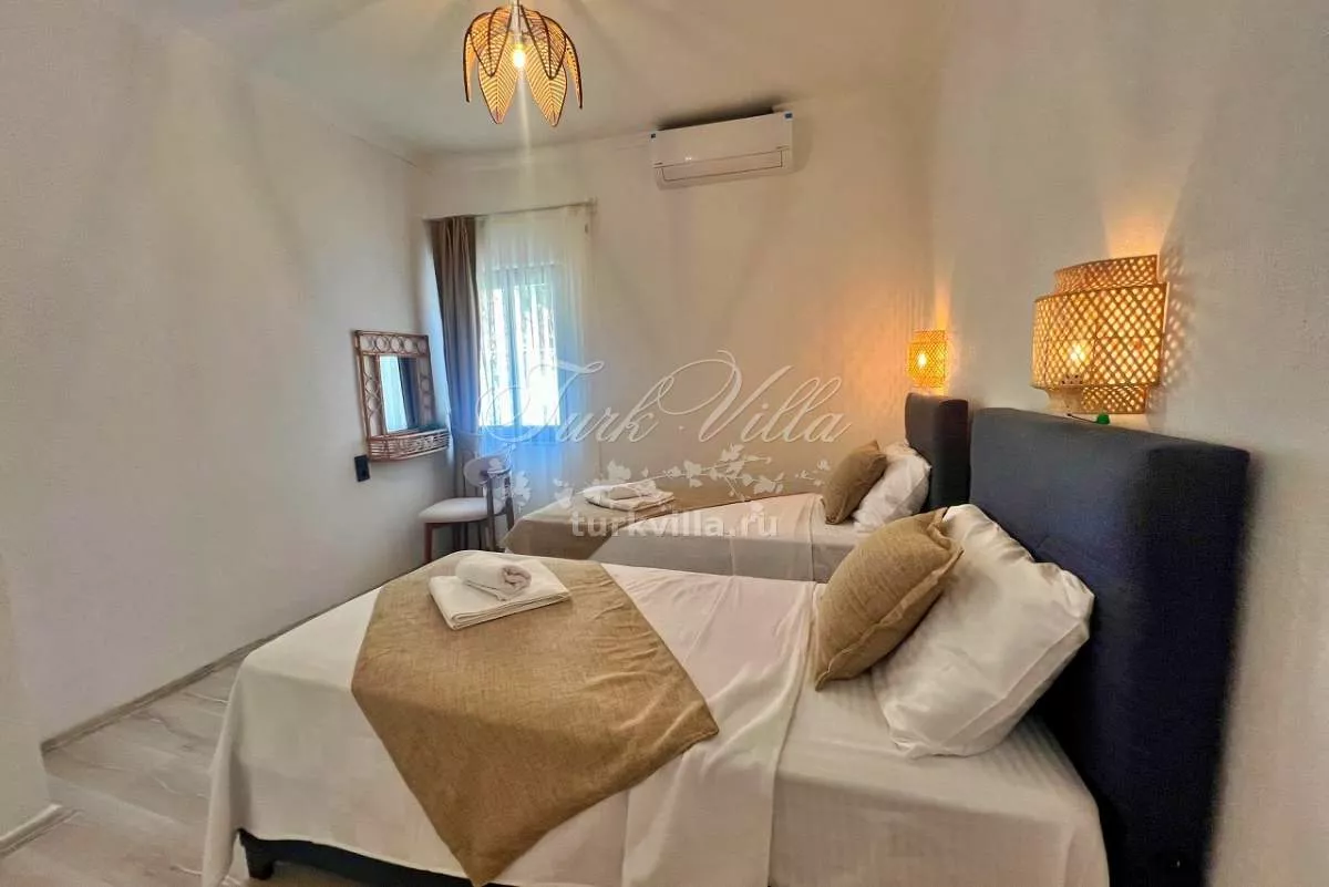 • Вторая с двумя односпальными кроватями, ванной комнатой, гардеробом и кондиционером