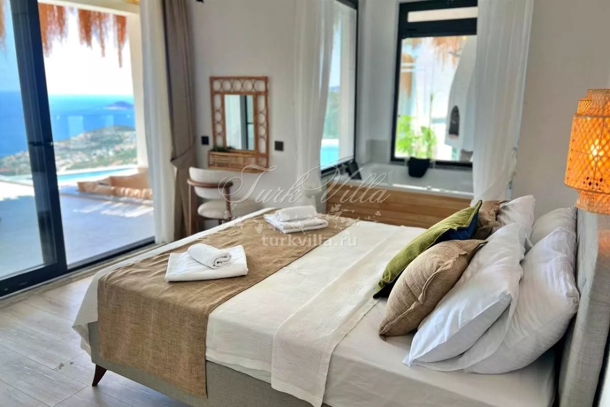 Вилла рассчитана на размещение до 5 человек и предлагает две просторные спальни с ванными комнатами. Одна из спален имеет панорамный вид, а вторая оснащена удобными кроватями для комфортного сна. Просторная гостиная и полностью оборудованная кухня обеспечивают уют и удобство на протяжении всего пребывания.