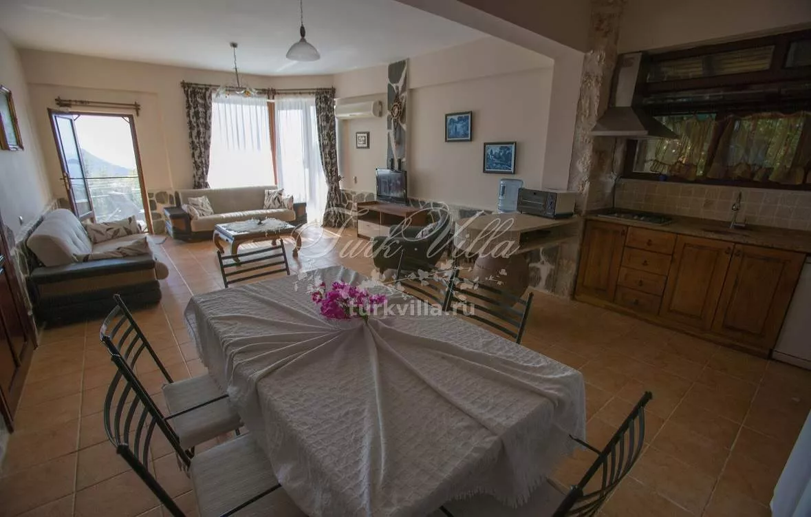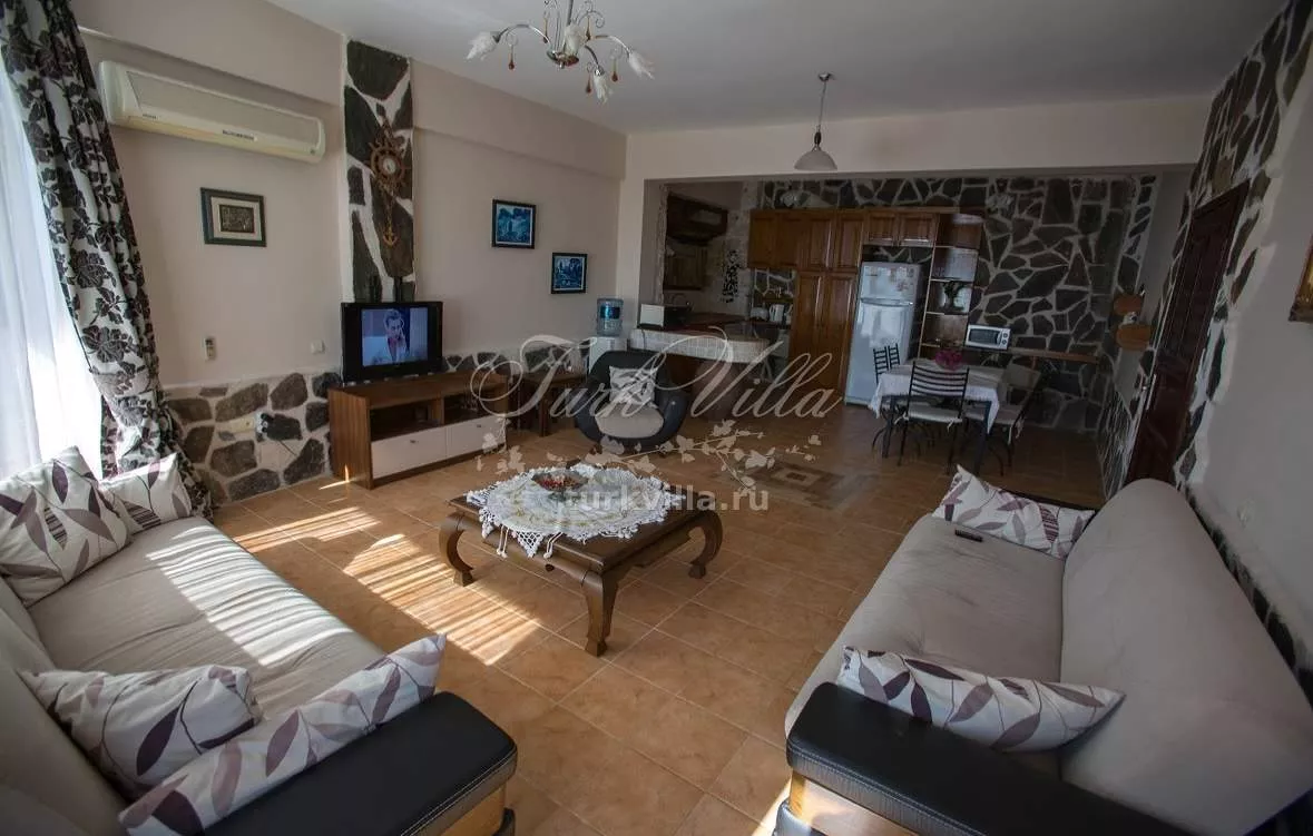 Сдается в аренду просторная вилла в районе Акбель, Калкан, идеально подходящая для больших семей или компаний до 8 человек. Вилла предлагает уединенную атмосферу, великолепный вид на море и горы, а также все удобства для комфортного отдыха.