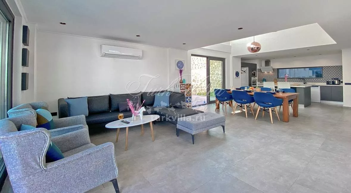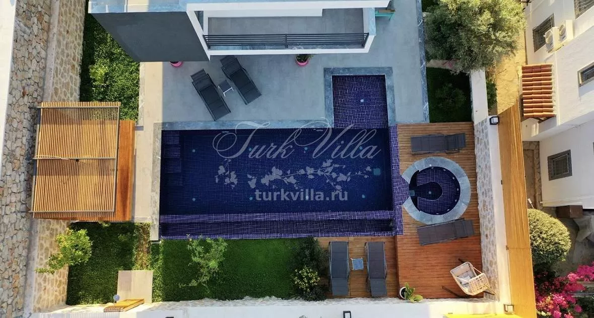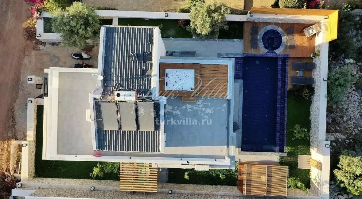 Вилла рассчитана на комфортное размещение до 6 человек и включает 3 спальни с индивидуальными ванными комнатами. Особенностью виллы является частный бассейн с зоной джакузи и просторная терраса с великолепным видом на залив.
