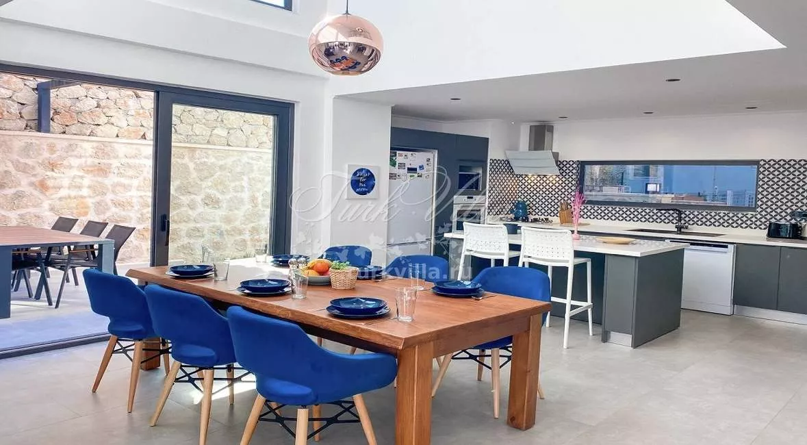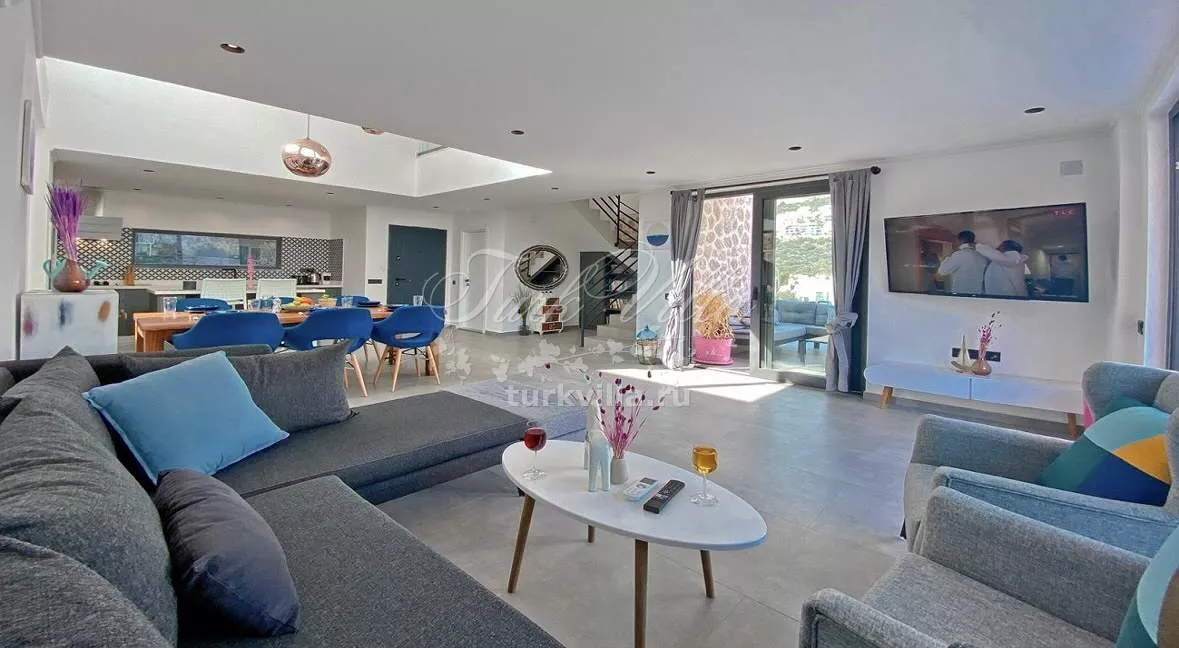 Предлагается в аренду стильная вилла, расположенная в одном из самых живописных районов Калкана — Каламар Кою. Современная архитектура, панорамный вид на море, приватная атмосфера и высокий уровень комфорта делают эту виллу отличным выбором для спокойного семейного отпуска или отдыха с друзьями. До пляжа можно дойти пешком, что особенно удобно для любителей прогулок у моря.