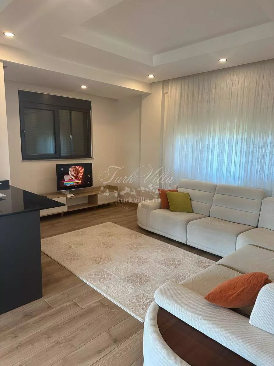 - Просторная гостиная с мягкой мебелью и телевизором