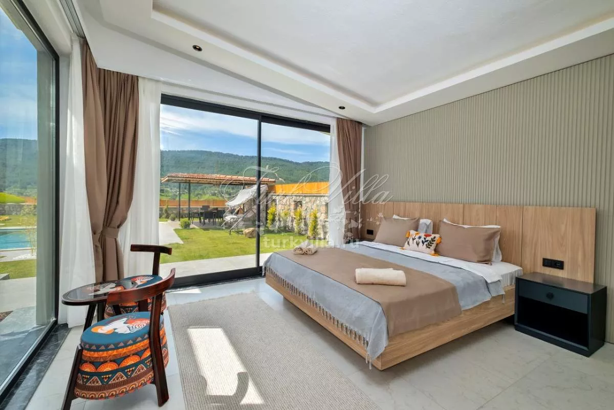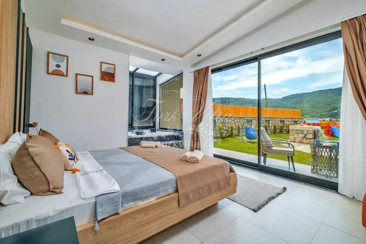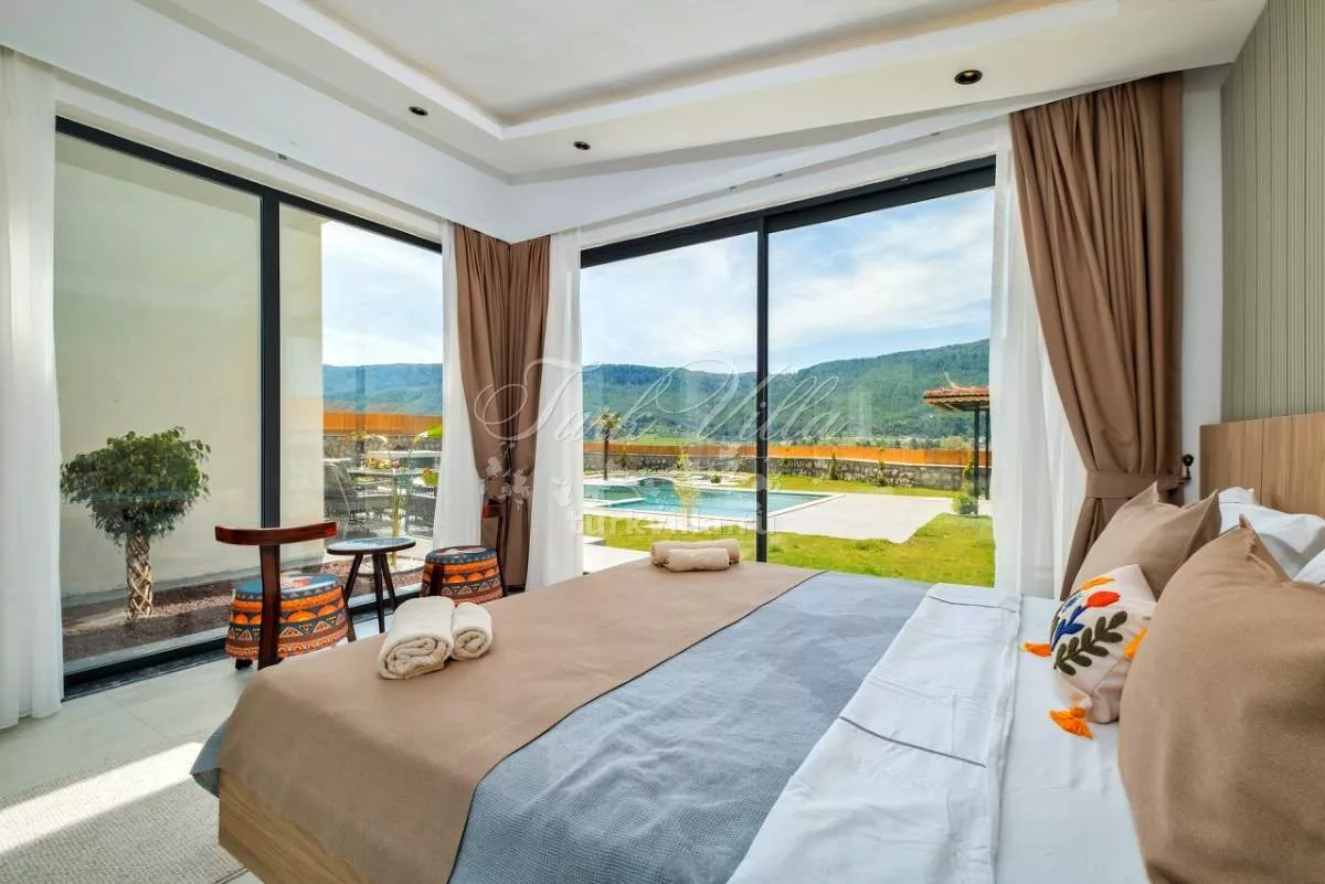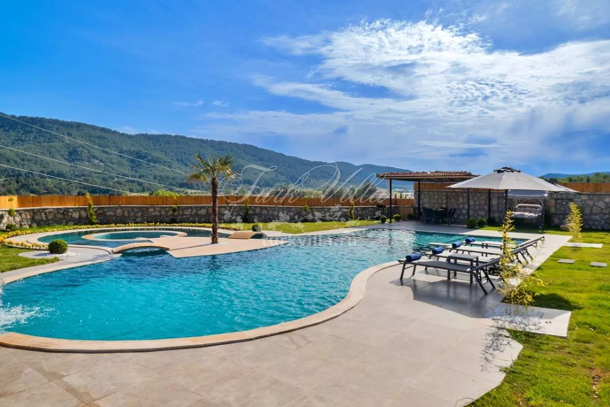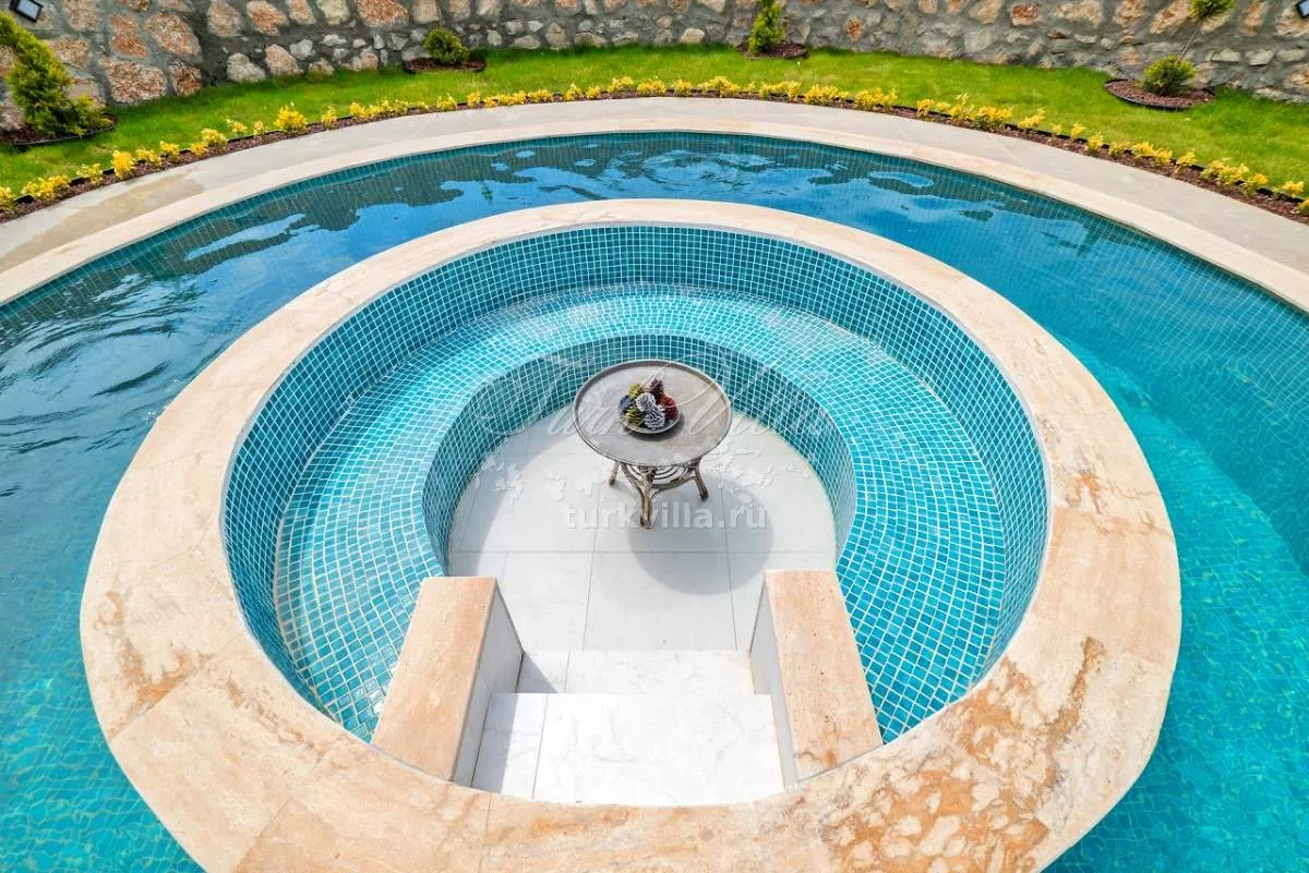 Вилла выделяется просторной территорией, панорамным видом и большим частным бассейном с террасой, скрытой от посторонних глаз. Здесь предусмотрены комфортные условия для отдыха: шезлонги, зонтики, удобные зоны для отдыха и обедов на свежем воздухе. Также на территории есть сауна, детская игровая площадка, настольный теннис и футбол, что делает эту виллу отличным выбором как для семей, так и для друзей.