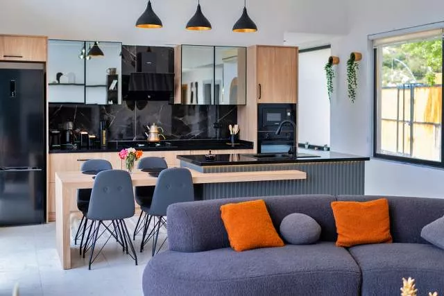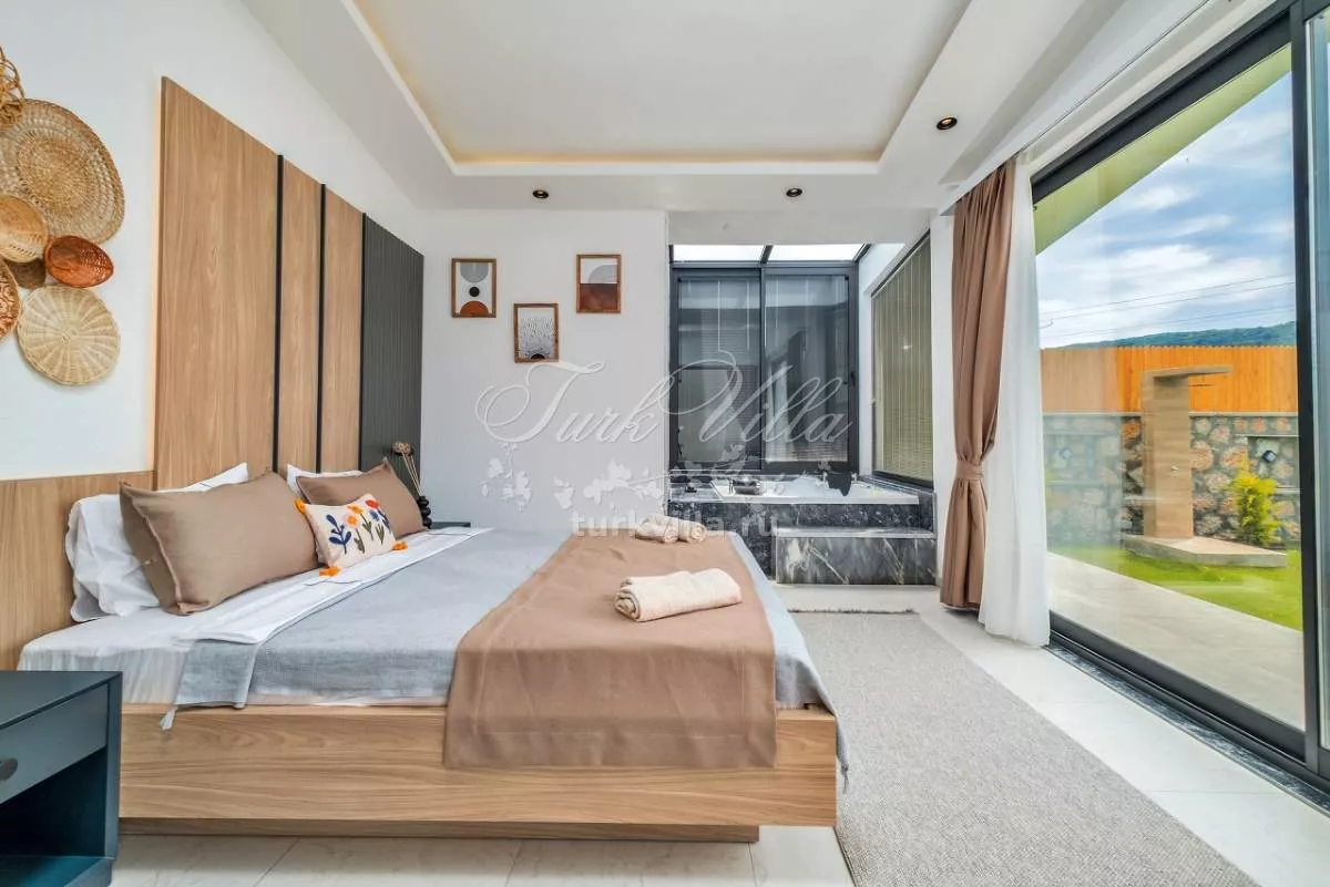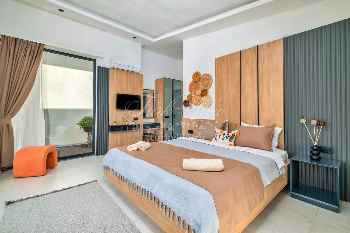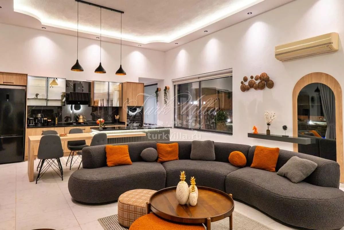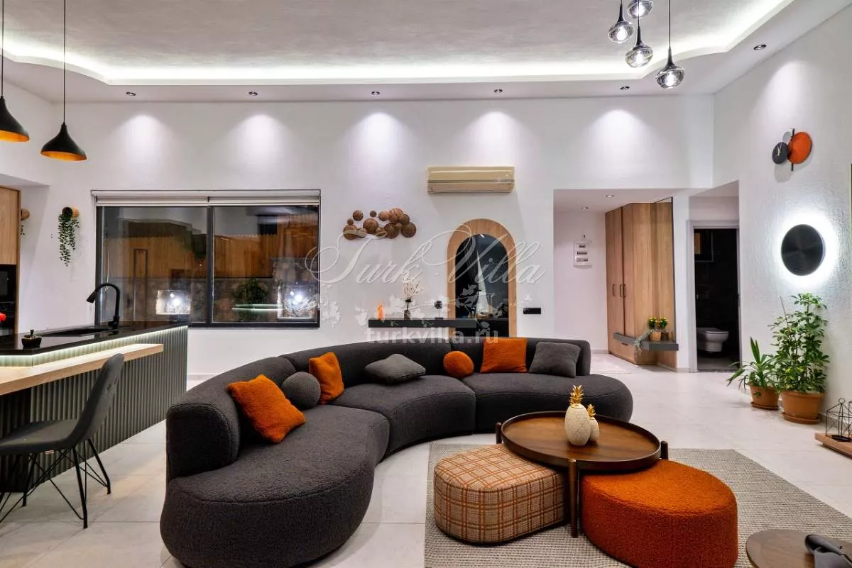 Предлагается в аренду современная вилла с великолепным дизайном, расположенная в районе Сарыбелен, недалеко от Калкана. Вилла рассчитана на размещение до 6 человек и особенно популярна среди пар, планирующих романтический отдых или медовый месяц. Она уединённо расположена в окружении природы и порадует гостей атмосферой уюта, тишины и красивыми видами на закат.