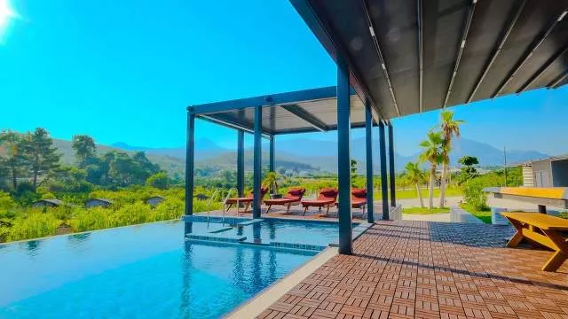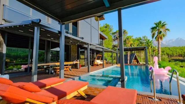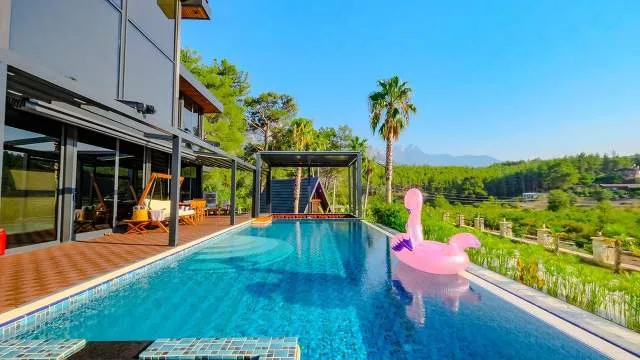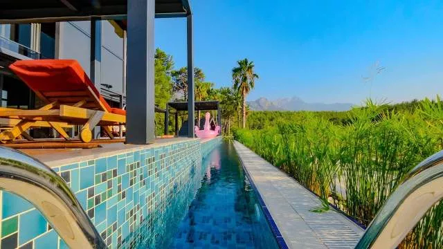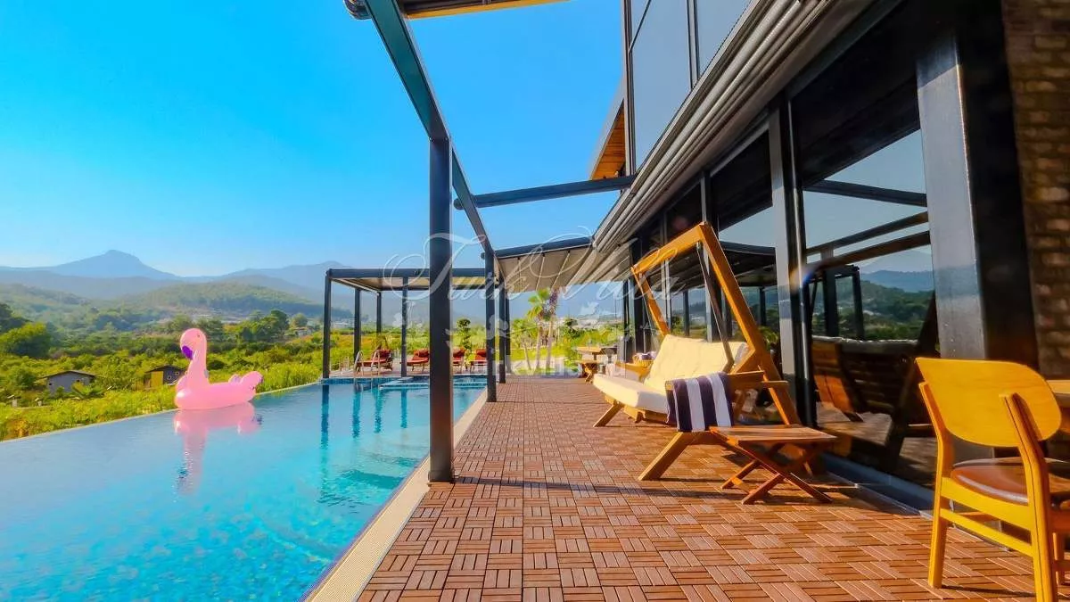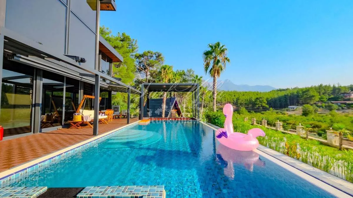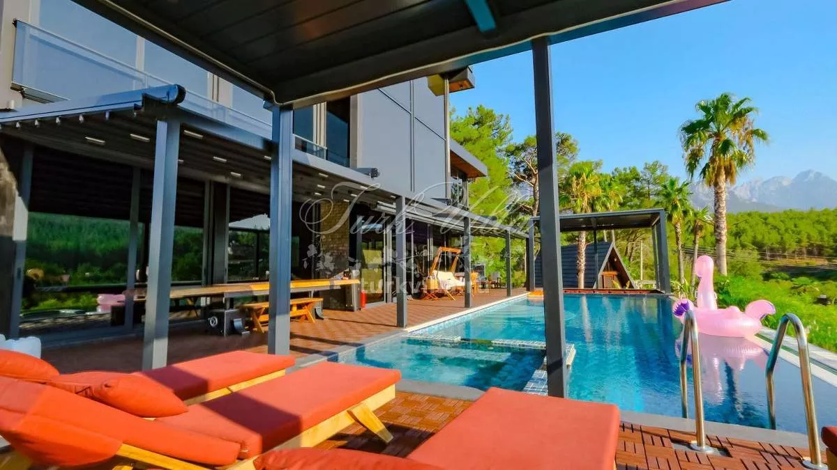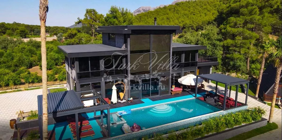 Вилла расположена в районе Чакырлар, всего в 14 км от центра Антальи. Подходит для получения вида на жительство и гражданства Турции.
