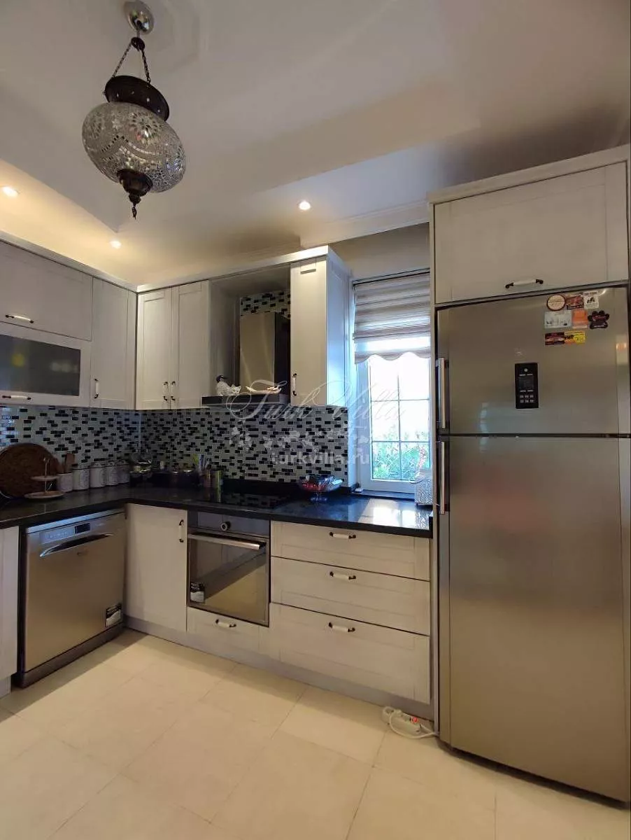 Общая площадь виллы составляет 165 м². Дом построен в формате «ikiz» (смежный с другой виллой), но имеет собственный вход, открытую парковку на одно авто и просторную террасу с выходом к бассейну. С террасы открывается красивый вид на горы, а тишина и зелень вокруг создают ощущение уединённости даже в самом центре города.