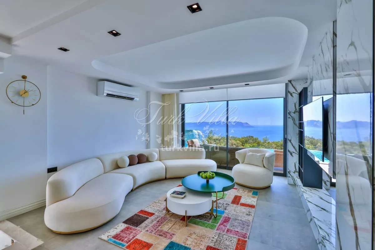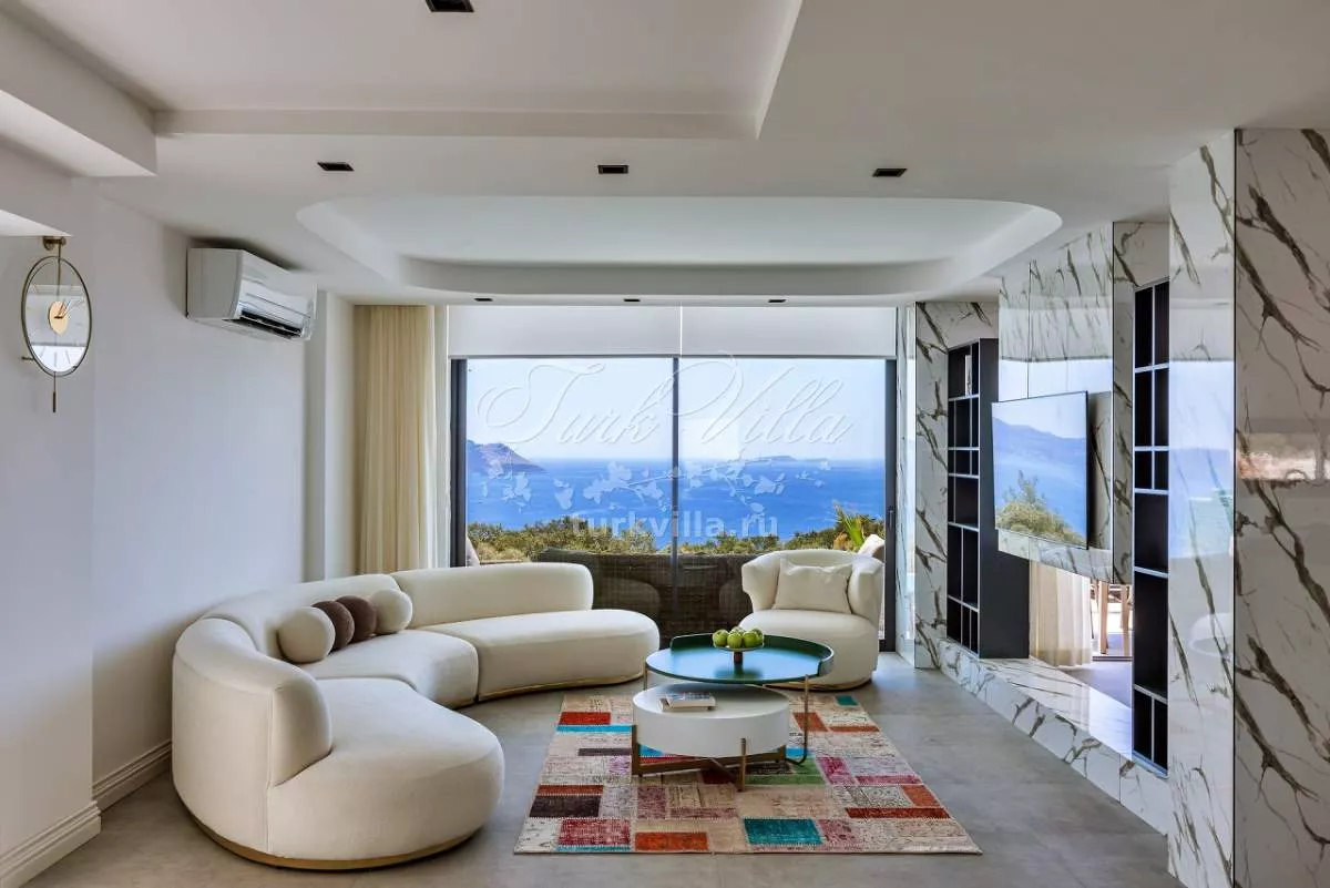 Уютная гостиная с видом на море, мягкий уголок, ТВ, спутниковое телевидение, Wi-Fi, кондиционер, прямой выход к бассейну и общий санузел на этаже.
