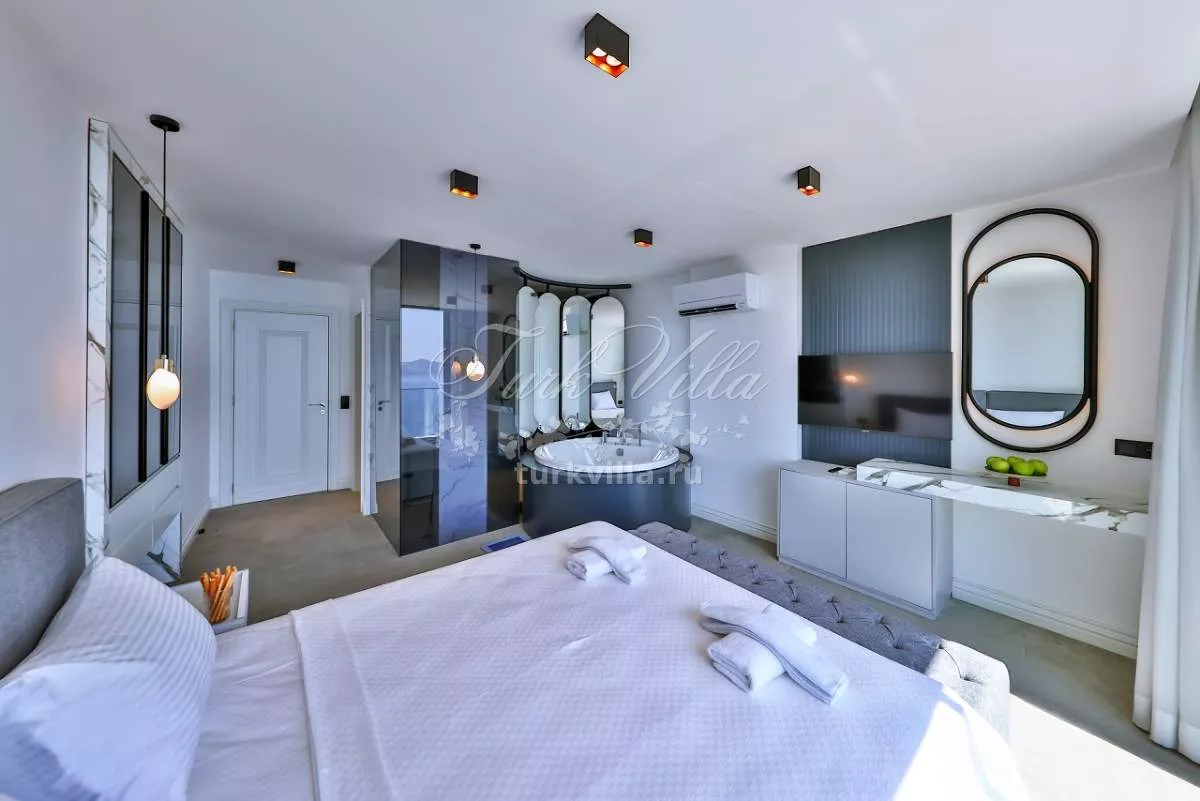 – Спальня 4: двуспальная кровать, ТВ, гардероб, комод, макияжный столик, джакузи, ванная комната