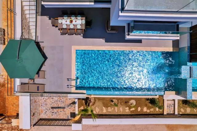 – Частный бассейн с видом на море (3.5 х 8.5 м, глубина 1.5 м)
