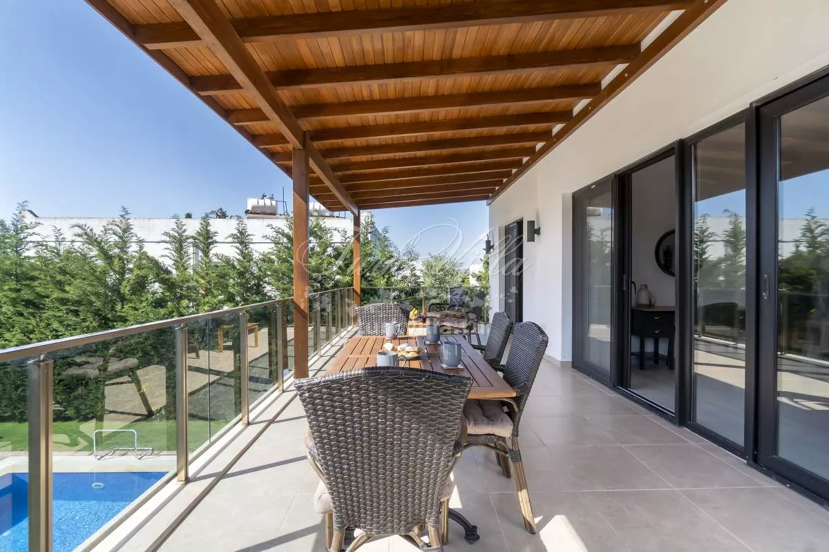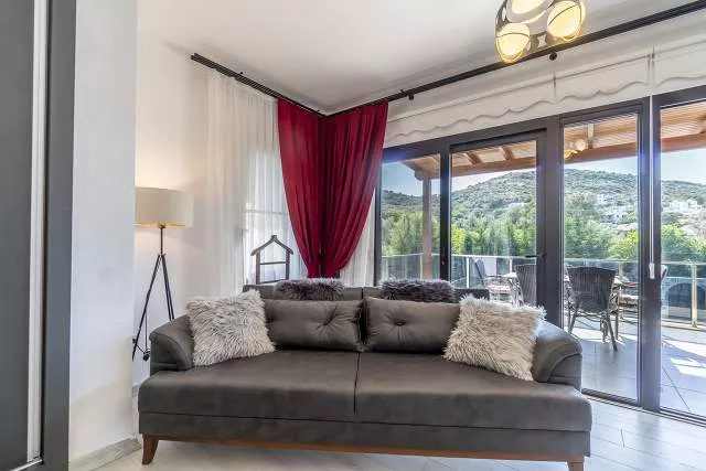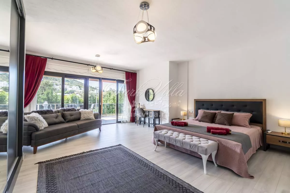 До аэропорта Милас-Бодрум — 45 минут, до центра Бодрума — 20 минут, а до пляжей и марины Ялыкавака — всего несколько минут на машине. Удобное местоположение делает виллу отличным выбором для тех, кто хочет совместить спокойствие с городской жизнью.