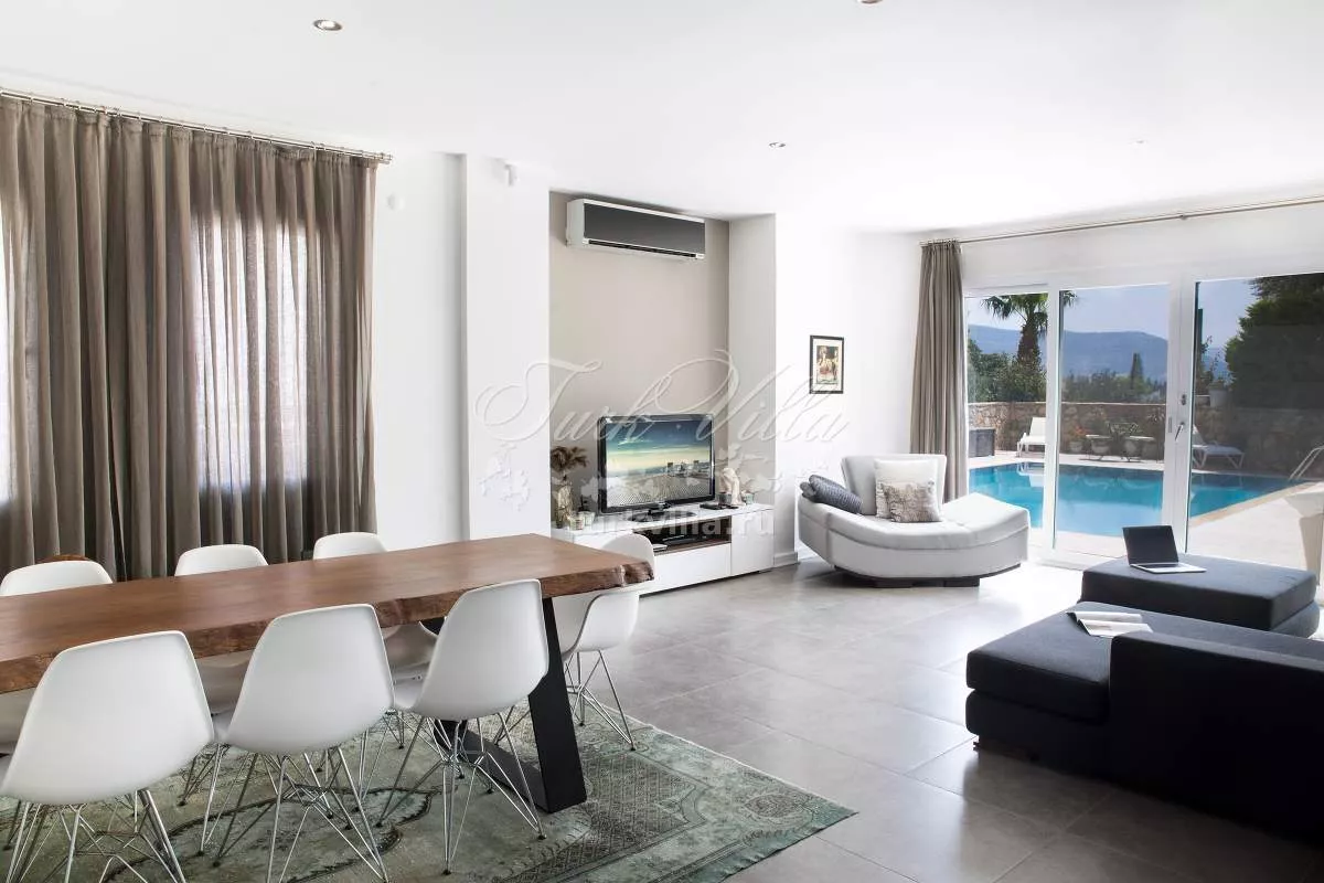 В шаговой доступности от центра Бодрума находится современная и уютная вилла, рассчитанная на комфортное размещение до 8 человек. Это идеальный вариант для отдыха семьи или компании друзей, ценящих комфорт, приватность и удобное расположение.
