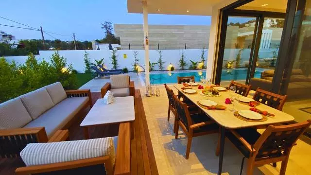 Вилла расположена в непосредственной близости от популярных курортных зон, таких как Ялыкавак и Гюндоан. За 5 минут на автомобиле можно добраться до отеля Edition и общественных пляжей Ялыкавака. Рядом находятся крупные супермаркеты Big Migros и Carrefour (1–2 минуты езды). На этой же улице, буквально в нескольких шагах, есть приятное место для завтраков.