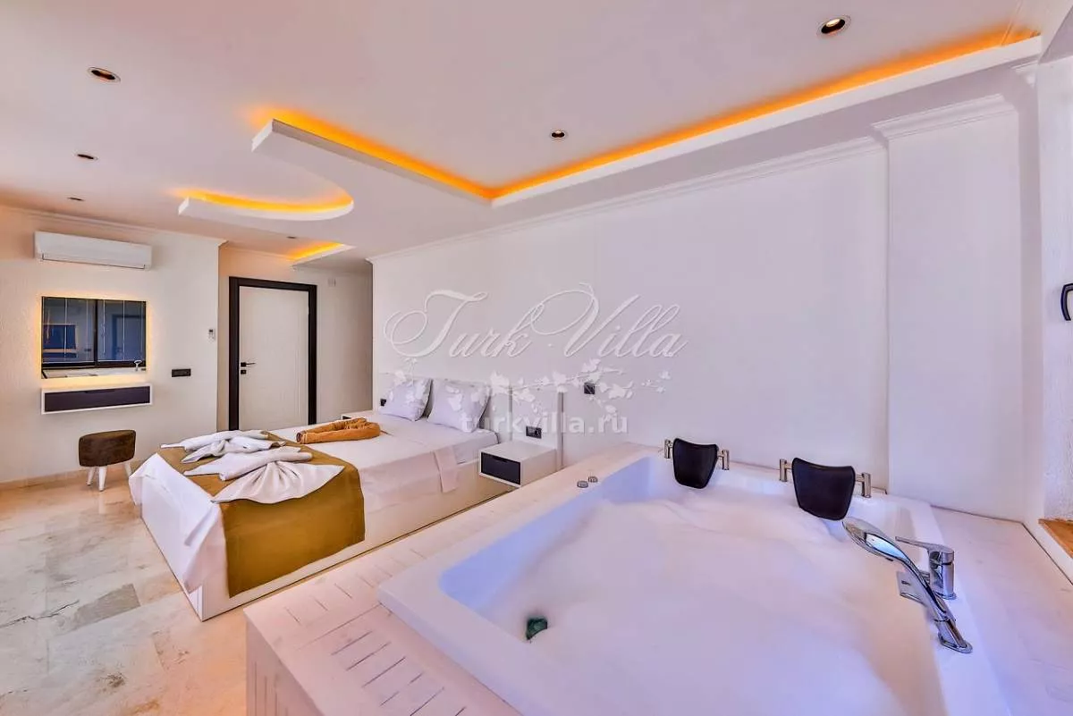 Первая спальня: двуспальная кровать, кондиционер, шкаф, туалетный столик, ванная комната с джакузи.
