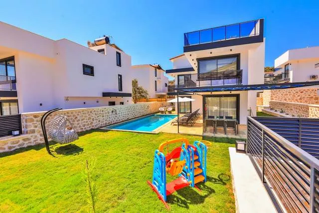 Эта уютная вилла расположена в самом центре Калкана — популярного курорта, который ежегодно привлекает сотни туристов. Вилла идеально подходит для размещения до 6 человек и предлагает комфортные условия для отдыха как семьям, так и компаниям друзей. В распоряжении гостей три стильно оформленные спальни с современной мебелью, каждая с собственной ванной комнатой, кондиционером и банными принадлежностями.
