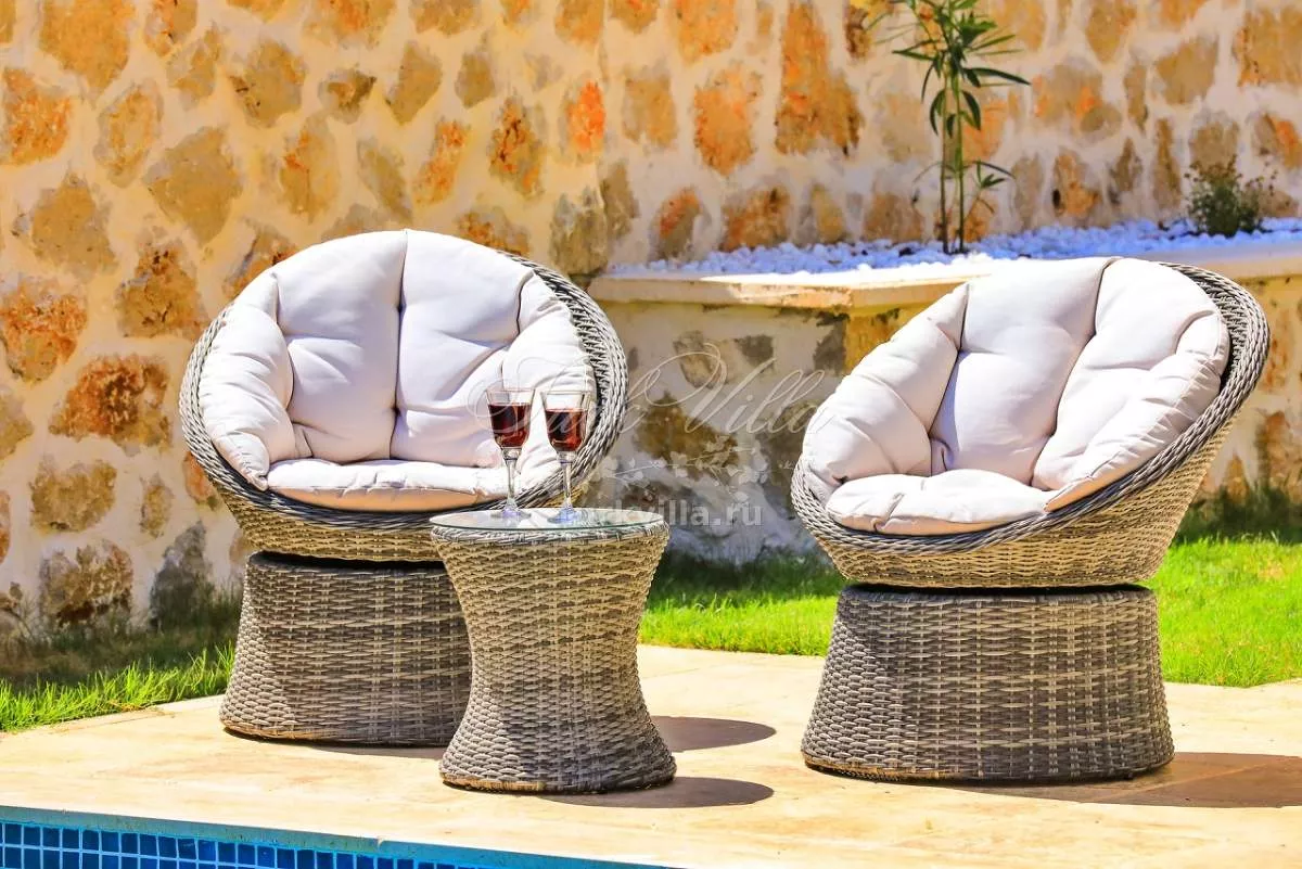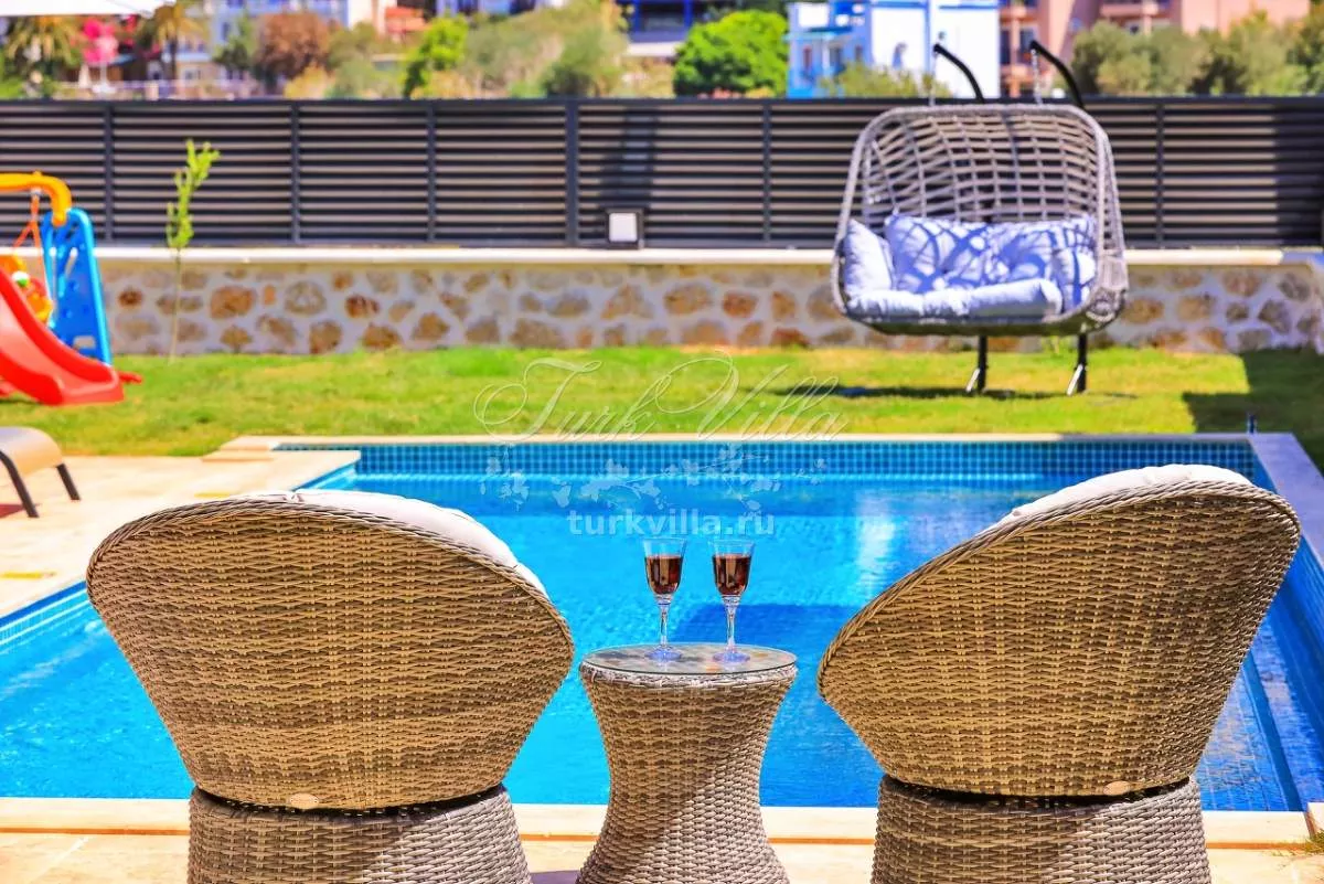 В частном саду гостей ждёт собственный бассейн, шезлонги, обеденная зона на открытом воздухе, качели и барбекю. Это отличное место для отдыха и неспешных вечеров под открытым небом.