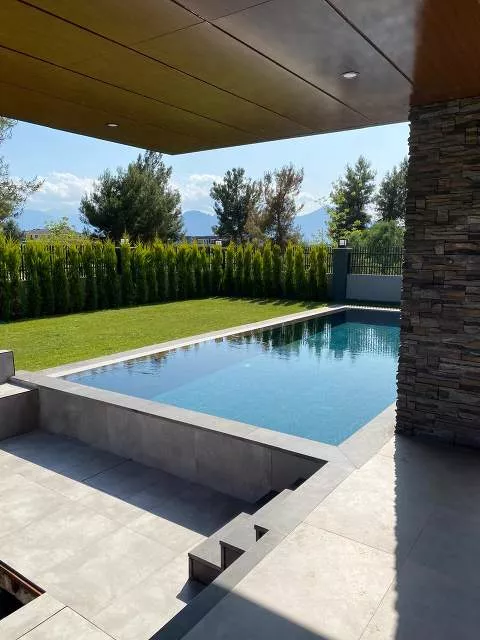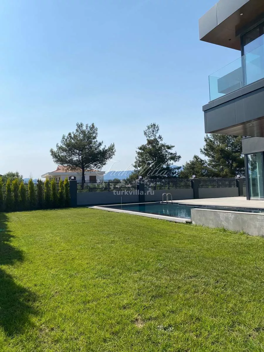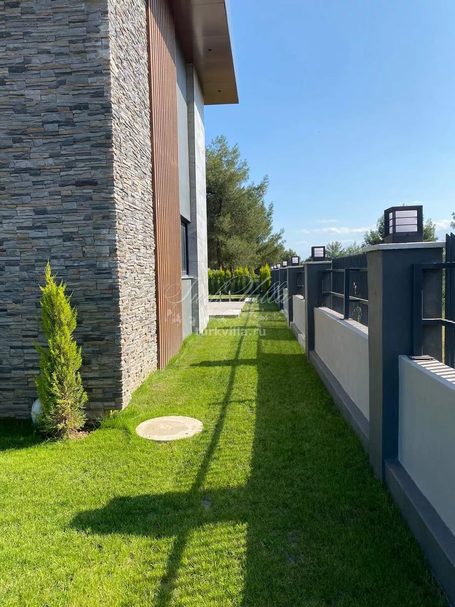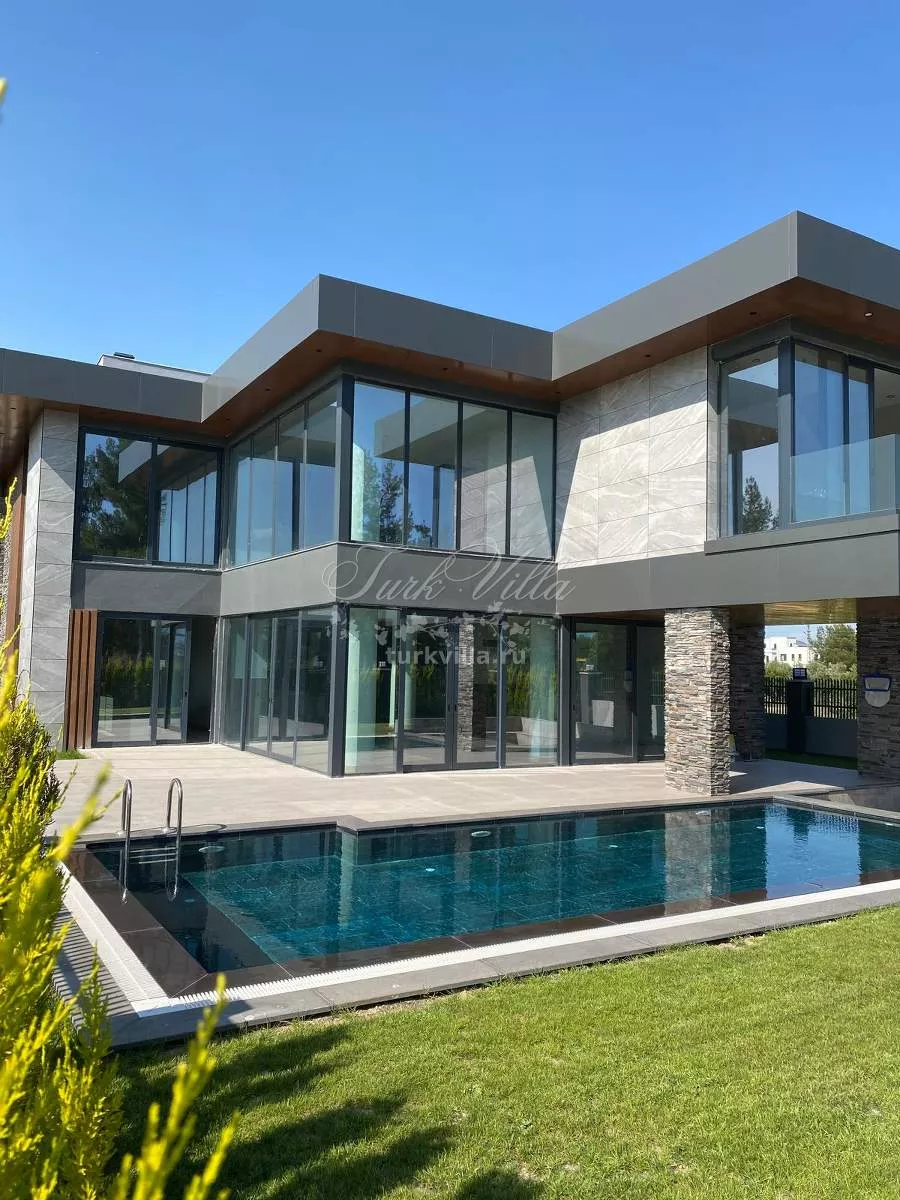 Вилла выполнена в современном архитектурном стиле с использованием высококачественных материалов и продуманной планировки. Интерьер — светлый, просторный, с акцентом на детали и удобство. Большие панорамные окна, высокие потолки, качественная отделка, встроенная кухня, система кондиционирования и отопления — всё продумано до мелочей.