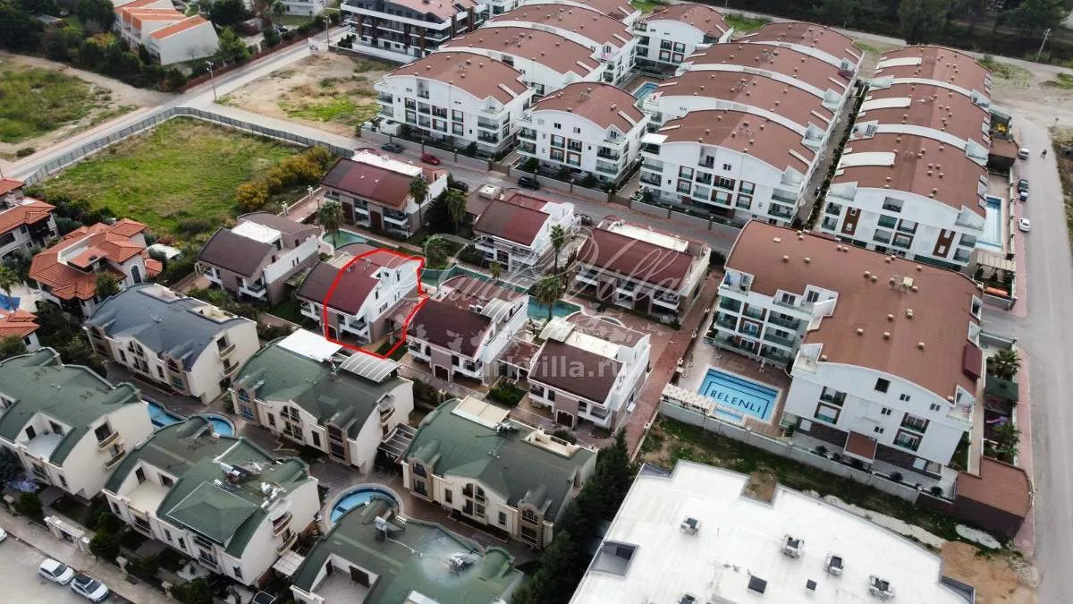 Вилла расположена в ухоженном жилом комплексе с закрытой территорией и общим бассейном для жильцов. На участке — зелёная зона и парковка.