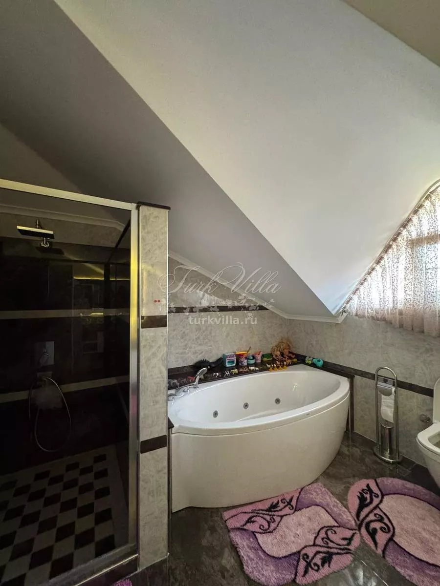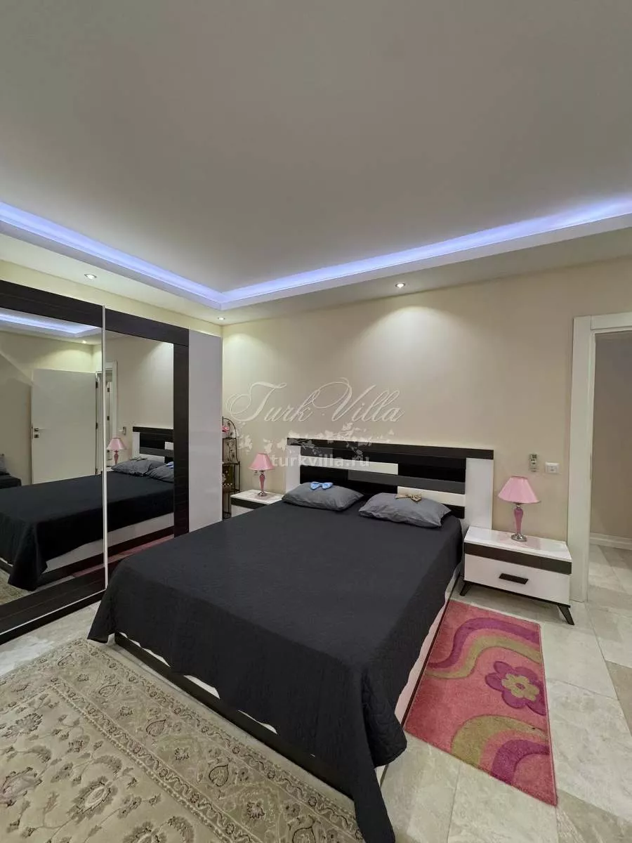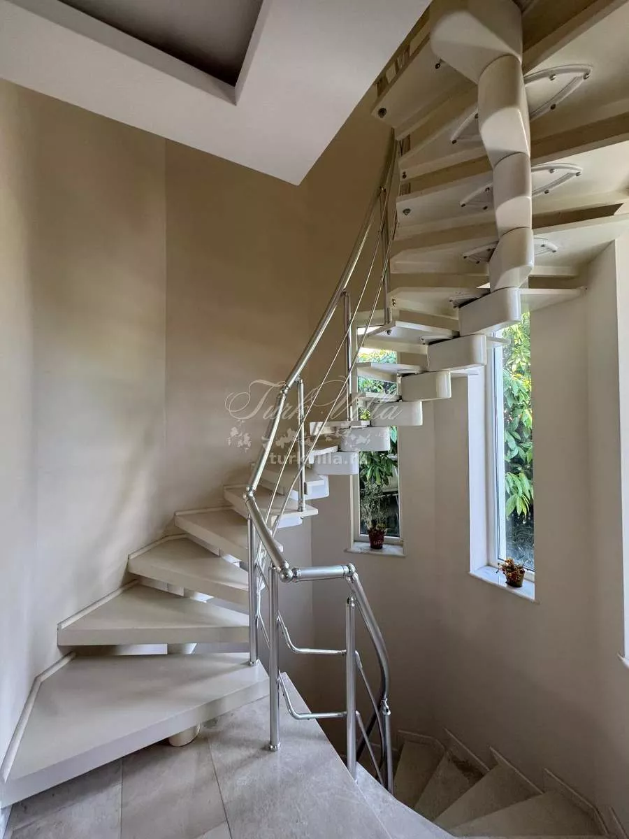 Вилла подходит для большой семьи, отличается удобной и функциональной планировкой. Район спокойный и зелёный, при этом в самом центре Кемера.